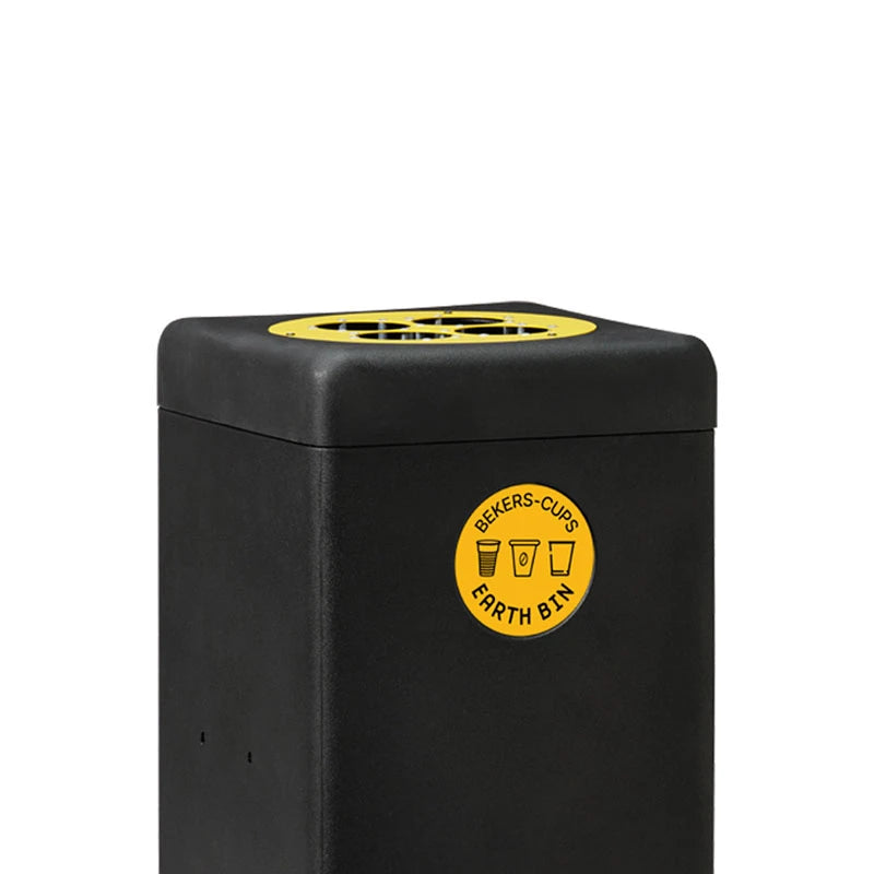 De Earthbin is een duurzame afvalbak van 90 liter, gemaakt van 100% gerecycled kunststof. Ideaal voor het gescheiden inzamelen van afval. Deze afvalbak is modulair koppelbaar tot een volledig afvalscheidingsstation en voorzien van een opvallende gele opening met aluminium bekerinzet voor duidelijke herkenning voor het makkelijk recyclen van bekers. Ontworpen voor langdurig gebruik, onderhoud en hergebruik, en tot 98% recyclebaar. Geheel in het kader van de duurzaamheidsgedachte verplicht de fabrikant zich bovendien tot terugname aan het einde van de levenscyclus.