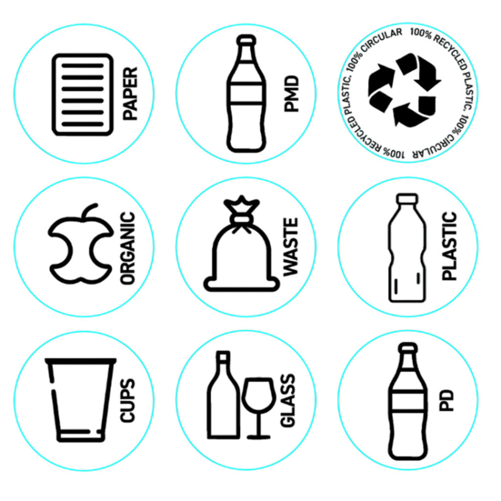 • Inclusief transparante stickervel met verschillende afvalstroom pictogrammen