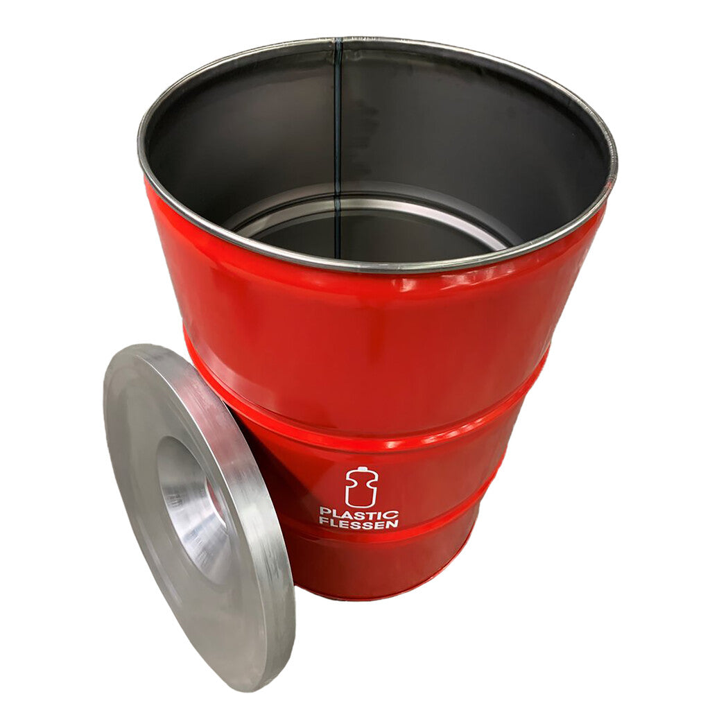 Stoere afvalbak van staal in de vorm van een olievat, voorzien van een vlamvertragend deksel. Een opvallende verschijning op iedere locatie. De olievaten zijn geschikt voor alle soorten afval, waardoor ze ook ingezet kunnen worden voor afvalscheiding. Zet ze op een rij of in een groepje bij elkaar voor een bijzonder afvalscheidingsstation. Tevens te personaliseren met diverse (reclame)uitingen.