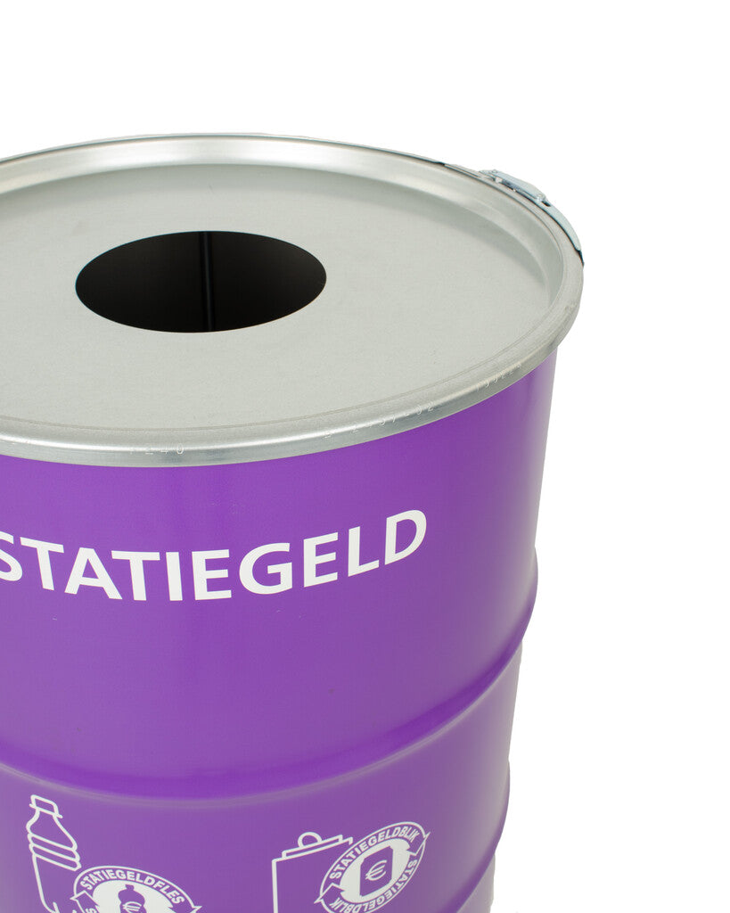 Stoere afvalbak van staal in de vorm van een olievat. Voorzien van een deksel met inwerpopening (Ø 20 cm) en dekselklem, die het deksel en de afvalzak op zijn plaats houden. Een opvallende verschijning op iedere locatie. De olievaten zijn geschikt voor alle soorten afval, waardoor ze ook ingezet kunnen worden voor afvalscheiding.
