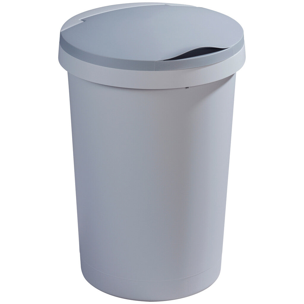 Ronde kunststof afvalbak met losse top en klepdeksel voorzien van een ergonomische handgreep. Het deksel kan verticaal open gezet worden. Makkelijk schoon te maken.