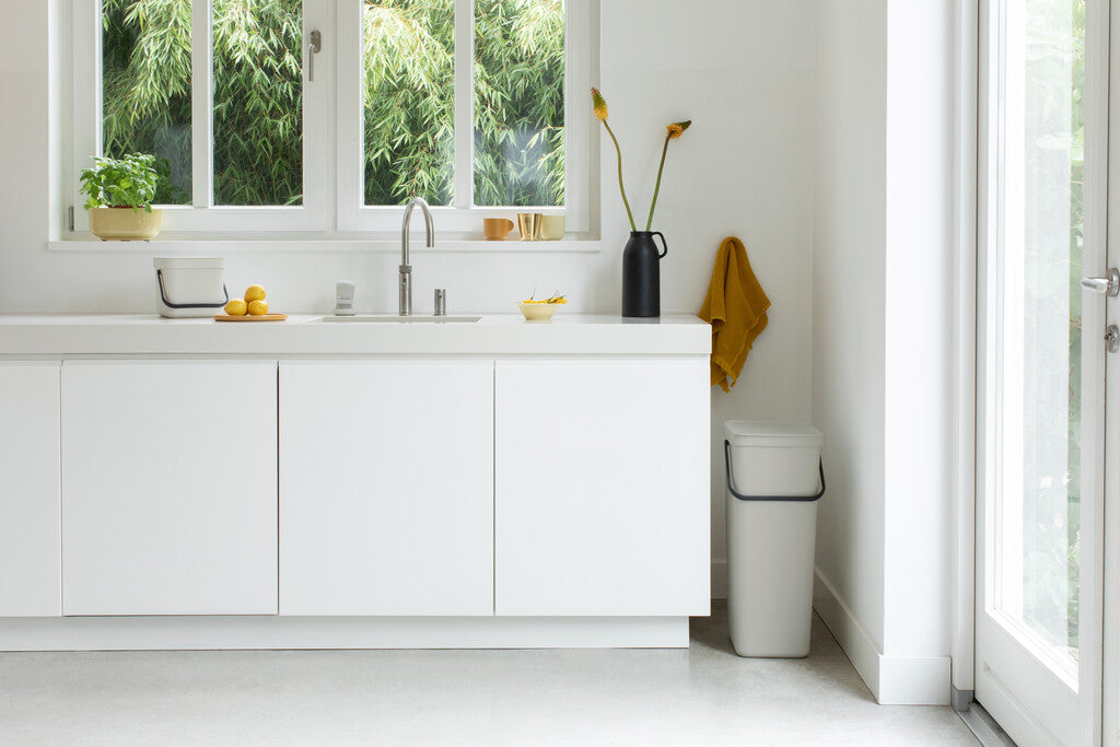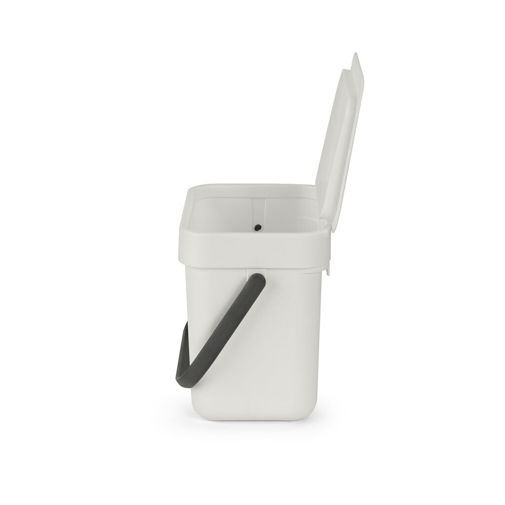 De Brabantia Sort & Go afvalemmer van 3 liter is geschikt voor klein keukenafval, zoals schillen, etensresten en kliekjes. Het compacte formaat maakt de emmer handig voor gebruik op het aanrecht of in een lade. Het deksel kan open blijven staan tijdens gebruik, en dankzij het hengsel en de bodemgreep is de emmer eenvoudig te legen. De gladde kunststof behuizing maakt schoonmaken makkelijk, en de afvalzak is netjes weggewerkt onder de bovenrand.