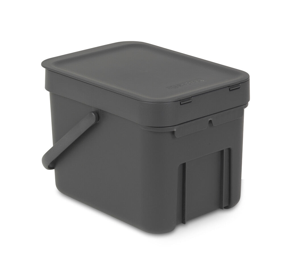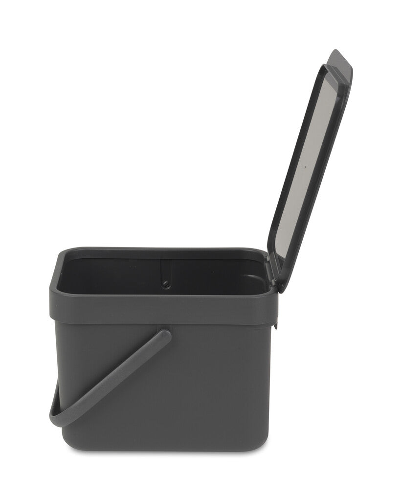 De Brabantia Sort & Go afvalemmer van 6 liter is compact en handig voor al je keukenafval, zoals etensresten, schillen en kliekjes. Dankzij het openblijvende deksel is hij altijd klaar voor gebruik. Zet hem op het aanrecht, plaats hem in een la of hang hem aan de muur met de meegeleverde beugel.