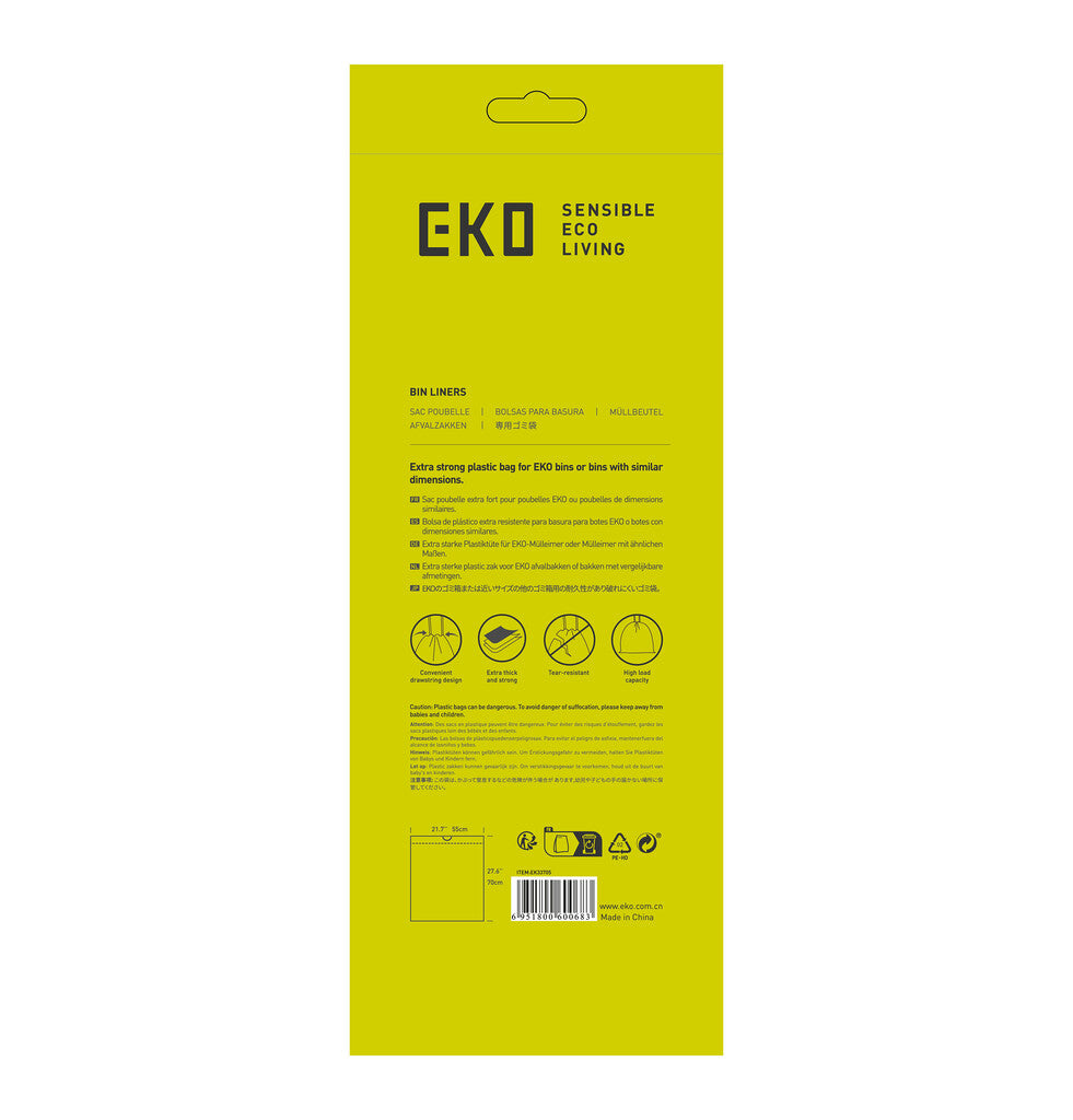 Extra sterke, perfect passende afvalzakken voor EKO afvalbakken of prullenbakken met vergelijkbare afmetingen. Voorzien van handige trekband voor het makkelijk sluiten en dragen van de vuilniszak