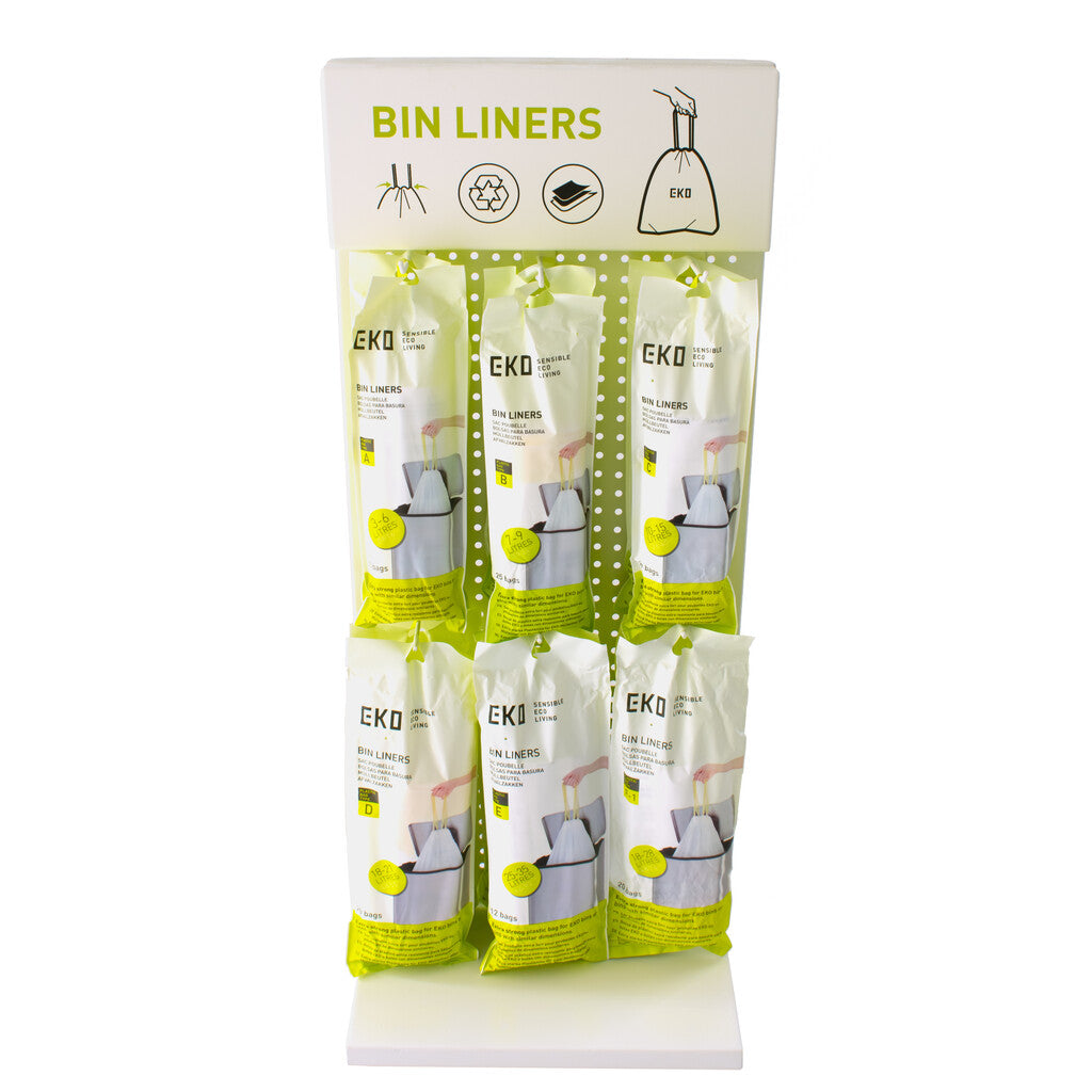 Extra sterke, perfect passende afvalzakken voor EKO afvalbakken of prullenbakken met vergelijkbare afmetingen. Voorzien van handige trekband voor het makkelijk sluiten en dragen van de vuilniszak