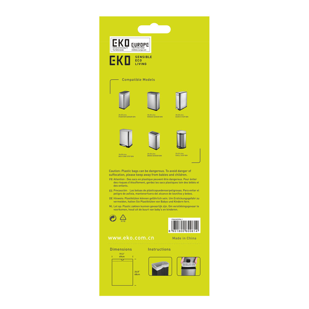 Extra sterke, perfect passende afvalzakken voor EKO afvalbakken of prullenbakken met vergelijkbare afmetingen. Voorzien van handige trekband voor het makkelijk sluiten en dragen van de vuilniszak
