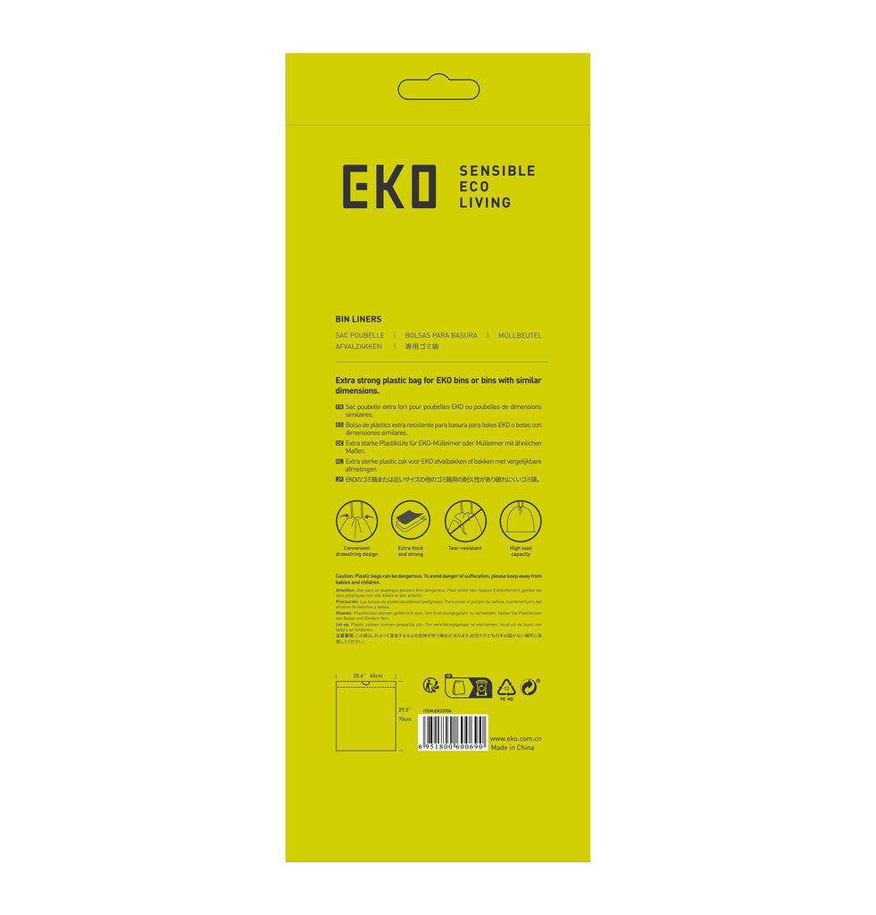 Extra sterke, perfect passende afvalzakken voor EKO afvalbakken of prullenbakken met vergelijkbare afmetingen. Voorzien van handige trekband voor het makkelijk sluiten en dragen van de vuilniszak