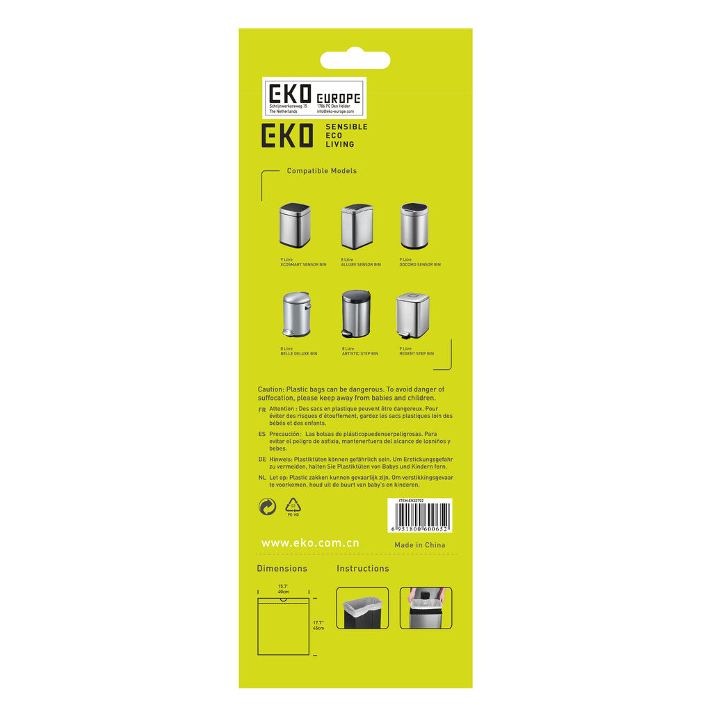 Extra sterke, perfect passende afvalzakken voor EKO afvalbakken of prullenbakken met vergelijkbare afmetingen. Voorzien van handige trekband voor het makkelijk sluiten en dragen van de vuilniszak