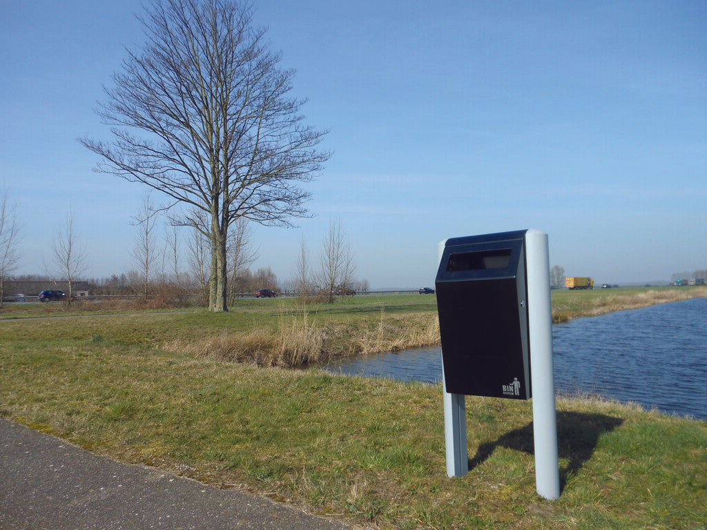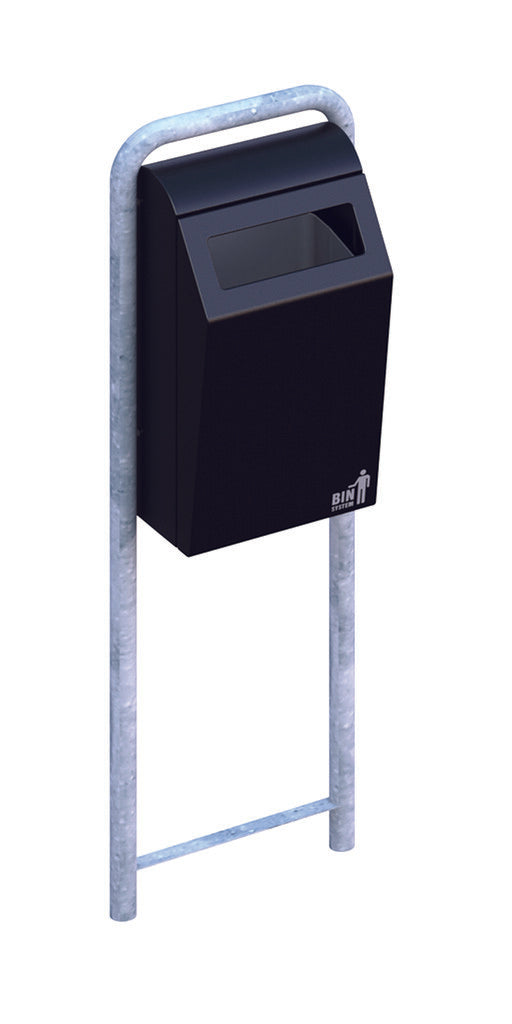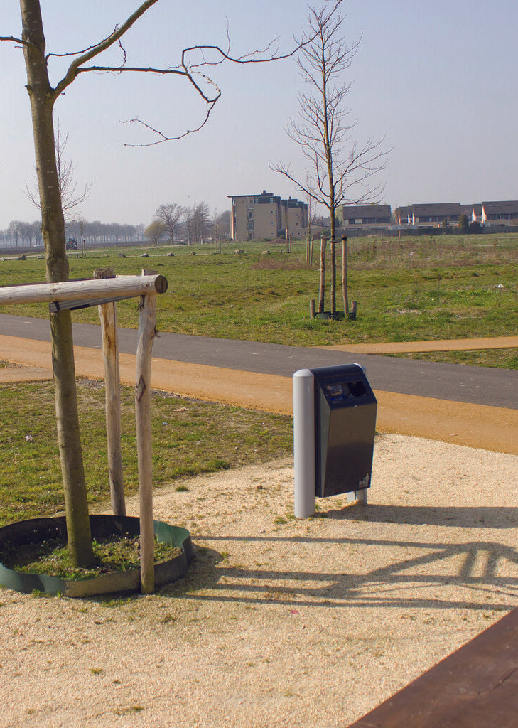 Fraai vormgegeven, robuuste buitenafvalbak van hoogwaardig, gepoedercoat verzinkt staal met inworpopening aan één zijde. Met een meegeleverde driekantsleutel is de afvalbak eenvoudig en snel te ontgrendelen. Door het openen van de deur is de robuuste, maar lichte aluminium binnenbak (38 liter) vrij toegankelijk en eenvoudig te ledigen. Duurzaam en vandalismebestendig. Zowel te bevestigen op een reeds aanwezige paal/ buisbeugel, als aan een hekwerk/ muur. Met de optioneel beschikbare aluminium profielstaanders creëert u een aantrekkelijk geheel.