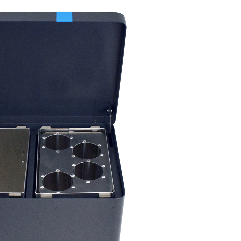 Bekerinzet van hoogwaardig aluminium passend in de binnenemmer van de RecycloKick. Netjes afgewerkt met spijlen zonder scherpe randen. Voorzien van 4 gaten met een diameter van 83 mm, gangbaar voor de meeste bekers. Door het efficiënte stapelsysteem passen er tot 3x meer bekers in.
