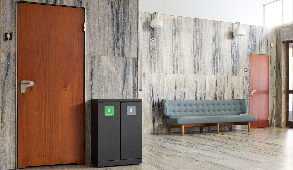 Strakke en functionele dubbele afvalscheidingsbak van hoogwaardig gepoedercoat staal met klepdeksel met twee grote inwerpopeningen. De stevige deuren met softclose magneetsluiting en geïntegreerde afvalzakhouders zorgen ervoor dat de afvalbak ARBO-verantwoord geleegd en de afvalzak snel verwisseld kan worden. De geïntegreerde wielen maken de unit verrijdbaar en is daardoor makkelijk te verplaatsen. Uitstekend te combineren en uit te breiden met andere afvalbakken uit de Bica-serie.