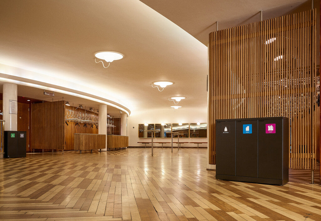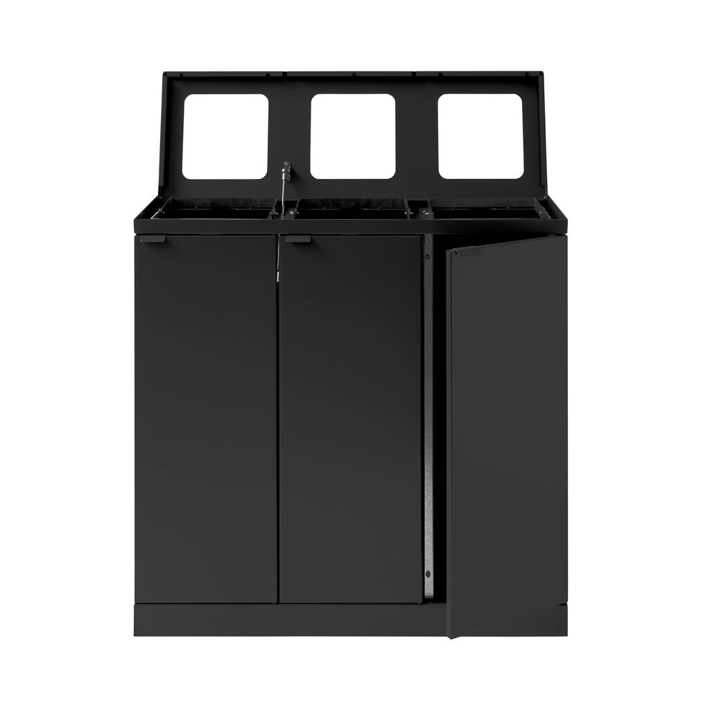 Strakke en functionele afvalbak voor 3 afvalstromen van hoogwaardig gepoedercoat staal. De unit heeft een klepdeksel met 3 grote inwerpopeningen. De stevige deuren met softclose magneetsluiting en geïntegreerde afvalzakhouders zorgen ervoor dat de afvalbak ARBO-verantwoord geleegd en de afvalzak snel verwisseld kan worden. De geïntegreerde wielen maken de unit verrijdbaar en is daardoor makkelijk te verplaatsen. Uitstekend te combineren en uit te breiden met andere afvalbakken uit de Bica-serie.