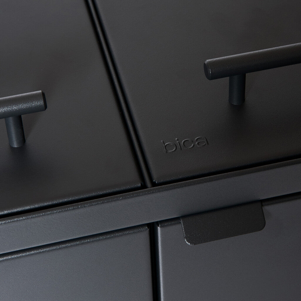 Strakke en functionele afvalbak voor 3 afvalstromen van hoogwaardig gepoedercoat staal. De unit heeft twee grote inwerpopeningen en een gesloten klepdeksel dat door de brede handgreep makkelijk te openen is. De stevige deuren met softclose magneetsluiting en geïntegreerde afvalzakhouders zorgen ervoor dat de afvalbak ARBO-verantwoord geleegd en de afvalzak snel verwisseld kan worden. De geïntegreerde wielen maken de unit verrijdbaar en is daardoor makkelijk te verplaatsen. Uitstekend te combineren en uit te breiden met andere afvalbakken uit de Bica-serie.