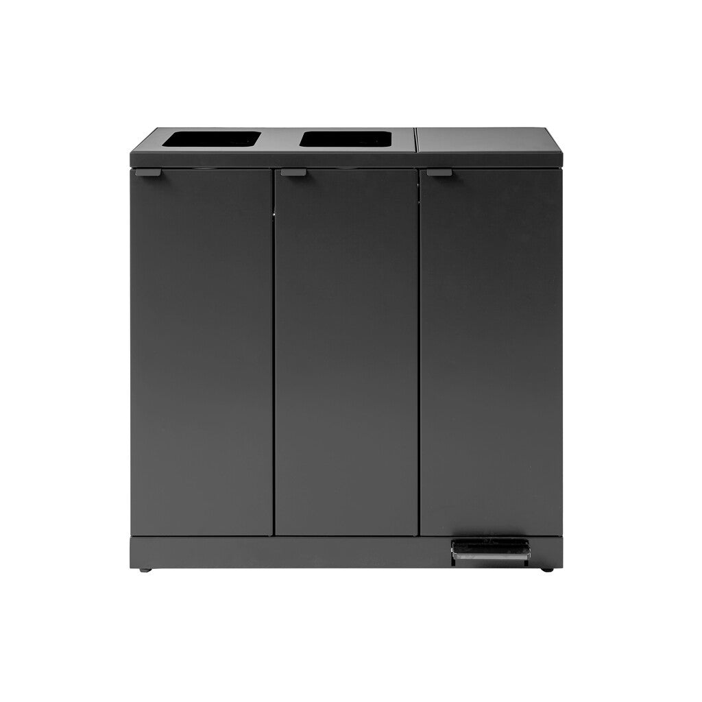 Elegante en functionele afvalbak voor 3 afvalstromen van hoogwaardig gepoedercoat staal. De unit heeft twee grote inwerpopeningen en een unit met hygiënisch gedempt sluitend deksel dat d.m.v. een robuust pedaal geopend kan worden. De stevige deuren met softclose magneetsluiting en geïntegreerde afvalzakhouders zorgen ervoor dat de afvalbak ARBO-verantwoord geleegd en de afvalzak snel verwisseld kan worden. De verstelbare pootjes maken de unit ideaal voor iedere ondergrond. Uitstekend te combineren en uit te breiden met andere afvalbakken uit de Bica-serie.