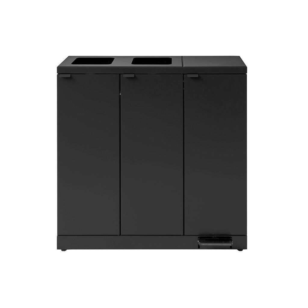 Elegante en functionele afvalbak voor 3 afvalstromen van hoogwaardig gepoedercoat staal. De unit heeft twee grote inwerpopeningen en een unit met hygiënisch gedempt sluitend deksel dat d.m.v. een robuust pedaal geopend kan worden. De stevige deuren met softclose magneetsluiting en geïntegreerde afvalzakhouders zorgen ervoor dat de afvalbak ARBO-verantwoord geleegd en de afvalzak snel verwisseld kan worden. De verstelbare pootjes maken de unit ideaal voor iedere ondergrond. Uitstekend te combineren en uit te breiden met andere afvalbakken uit de Bica-serie.