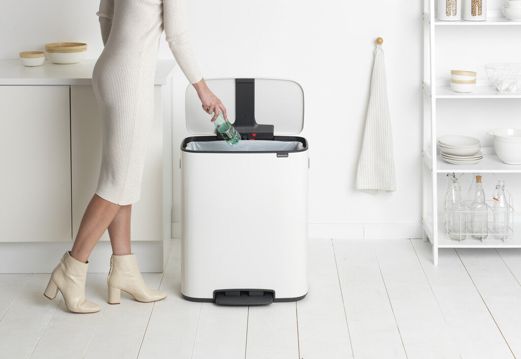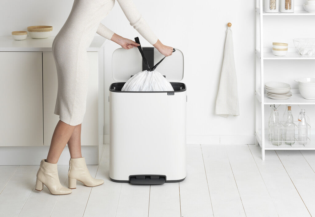 De Brabantia Bo pedaalemmer van 60 liter is een echte XXL-oplossing voor afval. Het stijlvolle design combineert een grote inhoud met gebruiksgemak. Dankzij de lichte pedaalbediening opent het deksel hygiënisch en sluit het zachtjes weer. De Bo past strak tegen de muur of handig in een hoek en staat op perfecte werkhoogte. Met de uitneembare binnenemmer en de grote opening is legen eenvoudig en schoon.