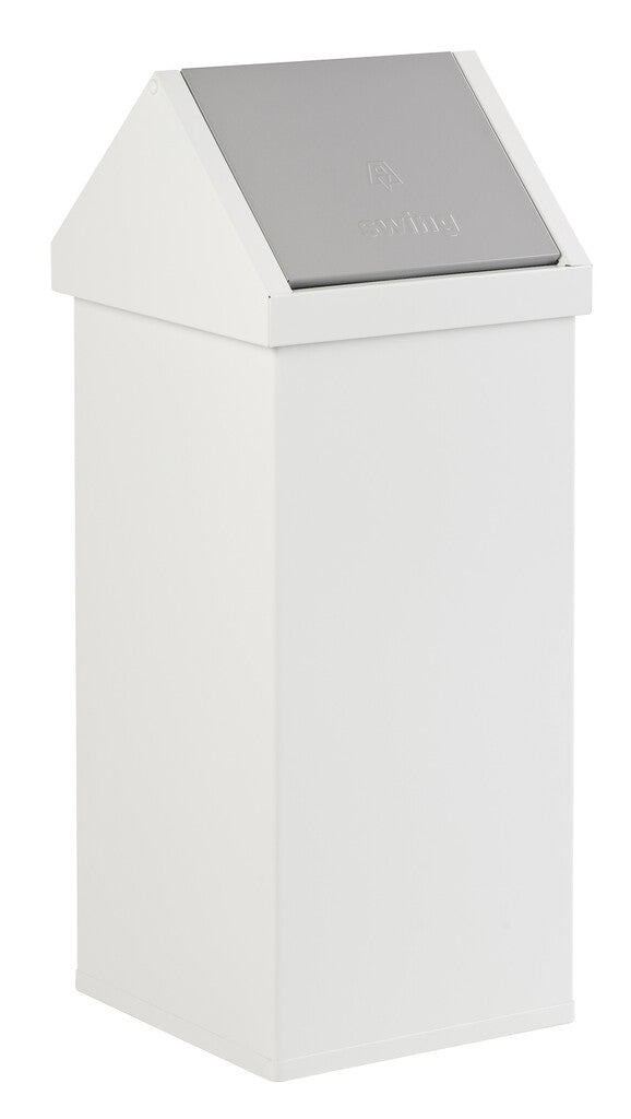 Aluminium of RVS afvalbak met tuimeldeksel.