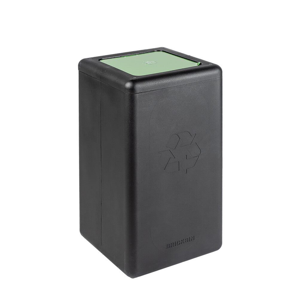 Circulaire Afvalbak met klepdeksel 65L | BrickBin | Groen/Zwart