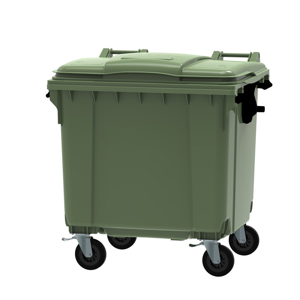 Container 1100L vlak deksel | Buitengebruik | Groen