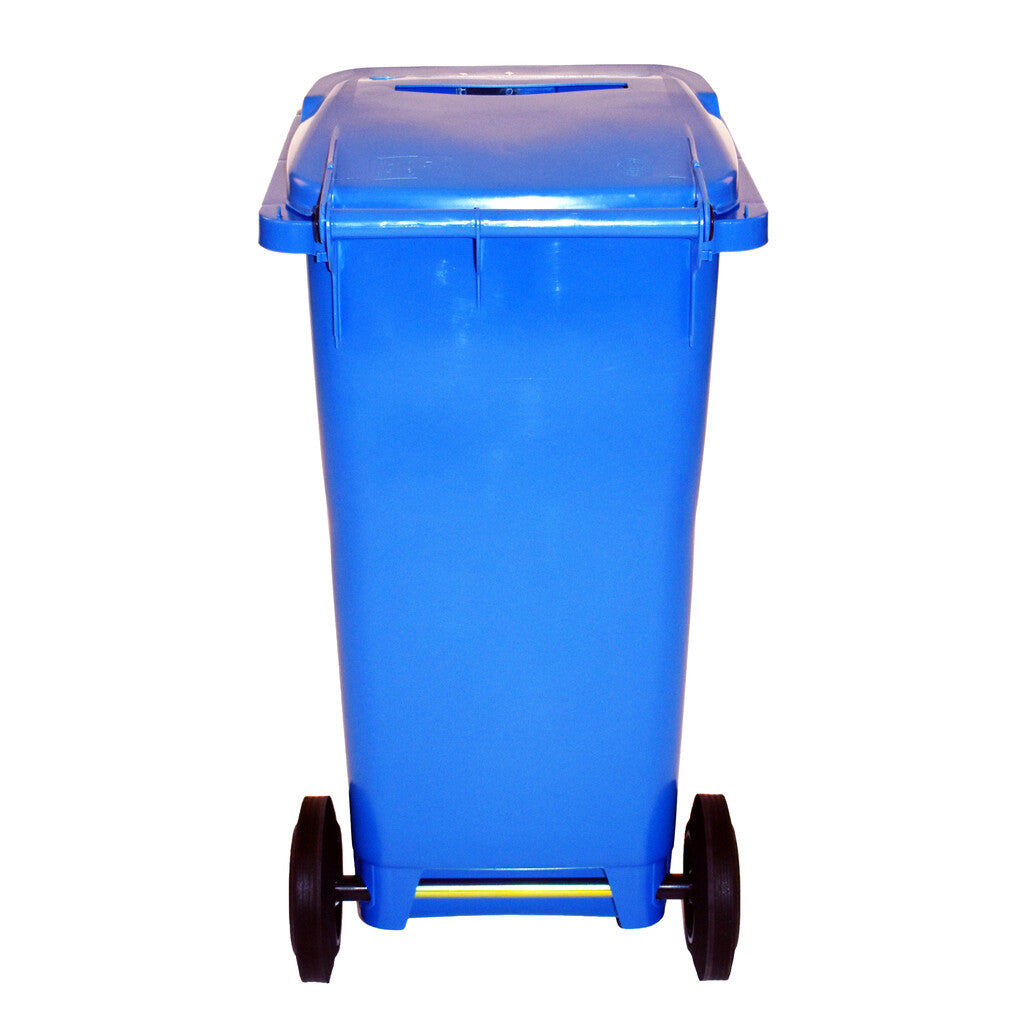 Plastic rolcontainer, gemaakt van robuust en stevig High Density Polyethyleen (HDPE). Bestand tegen rot, vorst, hitte, chemicaliën en UV-straling. Gegalvaniseerde stalen as. Veiligheidswielen met massieve rubberbanden. Conform EN 840 en RAL-goedgekeurd. Het ontwerp is geschikt voor alle DIN-koppelingen. Voorzien van een papierinworpdeksel voor (vertrouwelijk) papierrecycling. De container kan worden vergrendeld met het slot aan de voorzijde.