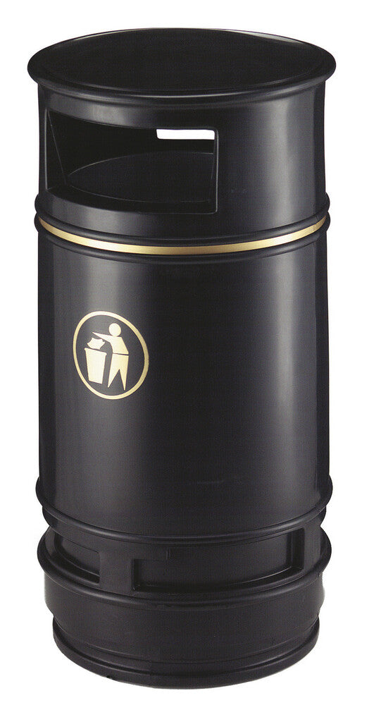 Kunststof, UV-bestendige afvalbak voor stad of park met metalen binnenemmer.