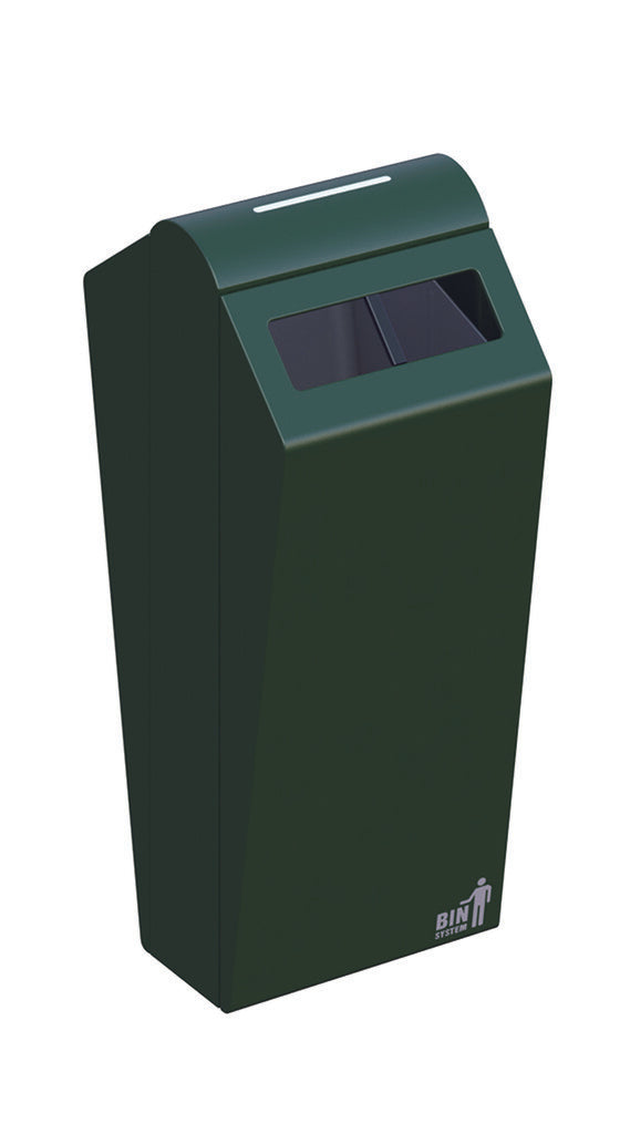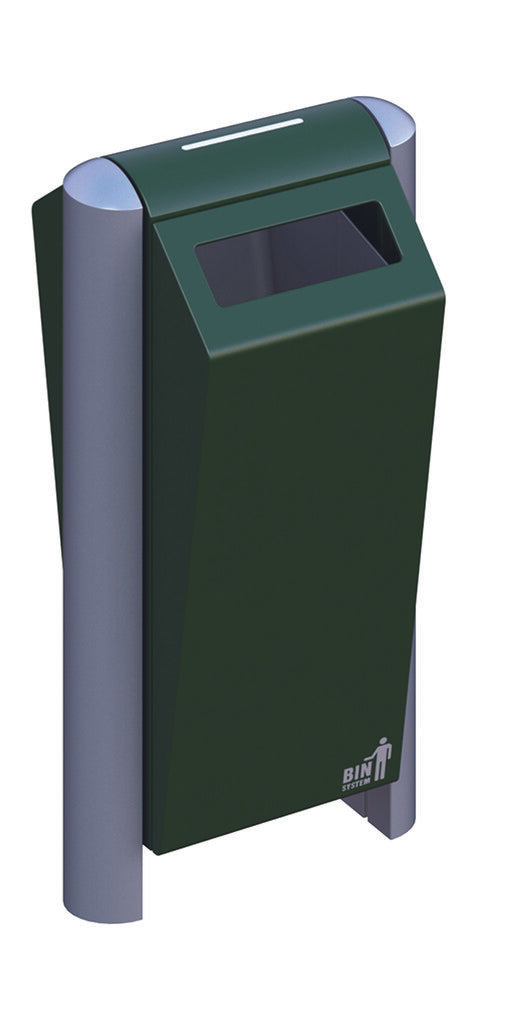 Fraai vormgegeven, robuuste buitenafvalbak van hoogwaardig, gepoedercoat verzinkt staal met inworpopening aan beide zijden. Met een meegeleverde driekantsleutel is de afvalbak eenvoudig en snel te ontgrendelen. Door het openen van de deur is de robuuste, maar lichte aluminium binnenbak (100 liter) vrij toegankelijk en eenvoudig te ledigen. Duurzaam en vandalismebestendig. Te bevestigen tussen aluminium profielstaanders in de grond. Ideaal voor plaatsing in een (attractie)park, nabij een winkelcentrum of openbare gelegenheden zoals scholen, ziekenhuizen, sport- en bedrijfsterreinen.