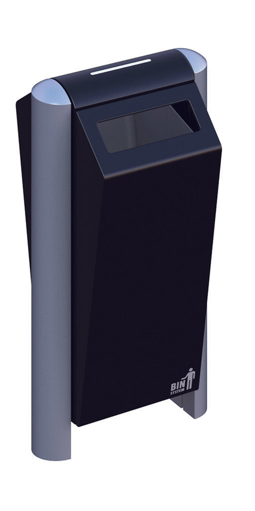 Fraai vormgegeven, robuuste buitenafvalbak van hoogwaardig, gepoedercoat verzinkt staal met inworpopening aan beide zijden. Met een meegeleverde driekantsleutel is de afvalbak eenvoudig en snel te ontgrendelen. Door het openen van de deur is de robuuste, maar lichte aluminium binnenbak (100 liter) vrij toegankelijk en eenvoudig te ledigen. Duurzaam en vandalismebestendig. Te bevestigen tussen aluminium profielstaanders in de grond. Ideaal voor plaatsing in een (attractie)park, nabij een winkelcentrum of openbare gelegenheden zoals scholen, ziekenhuizen, sport- en bedrijfsterreinen.