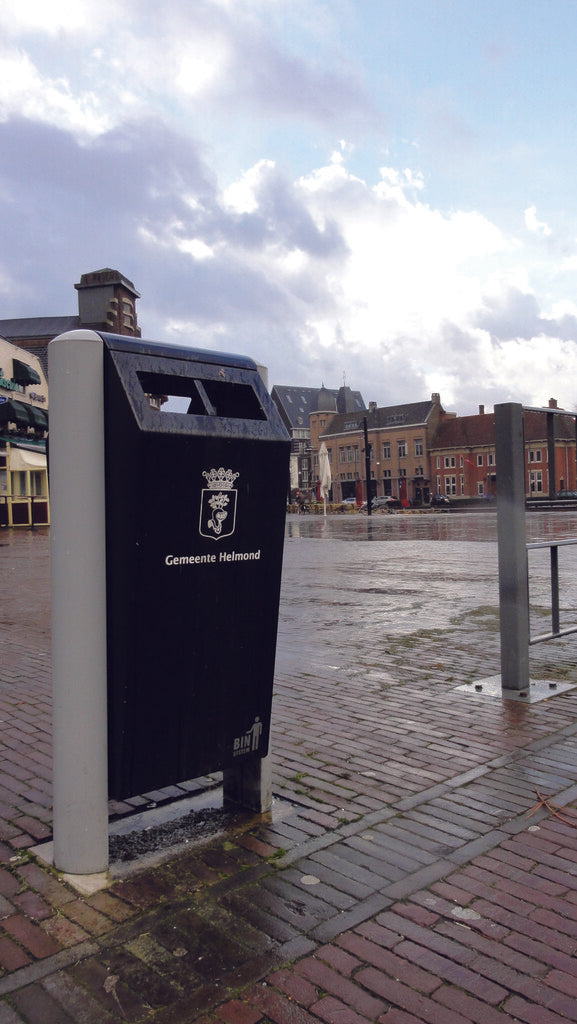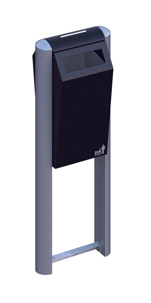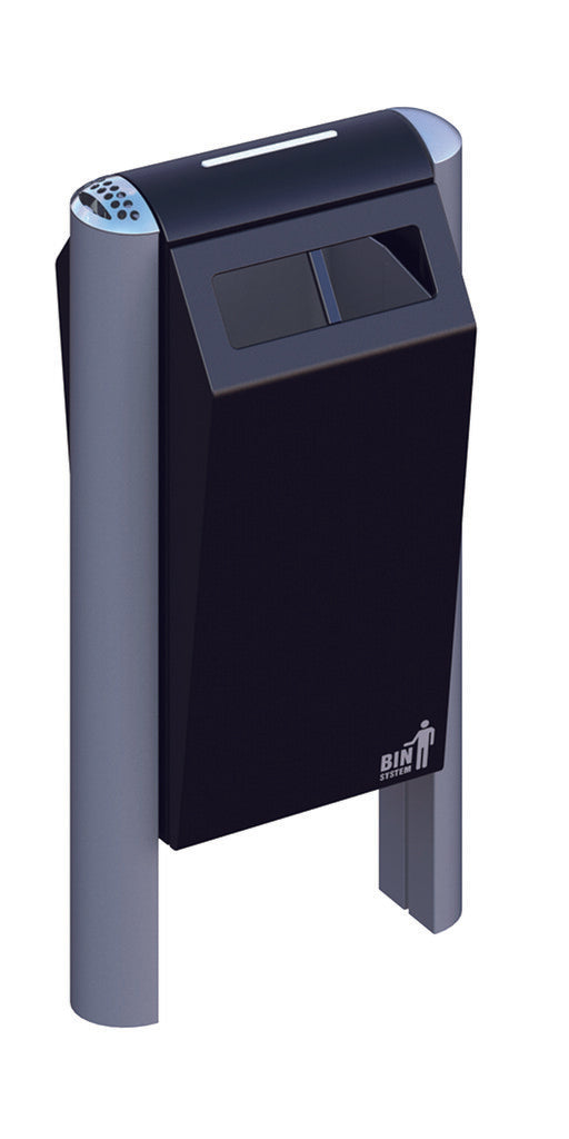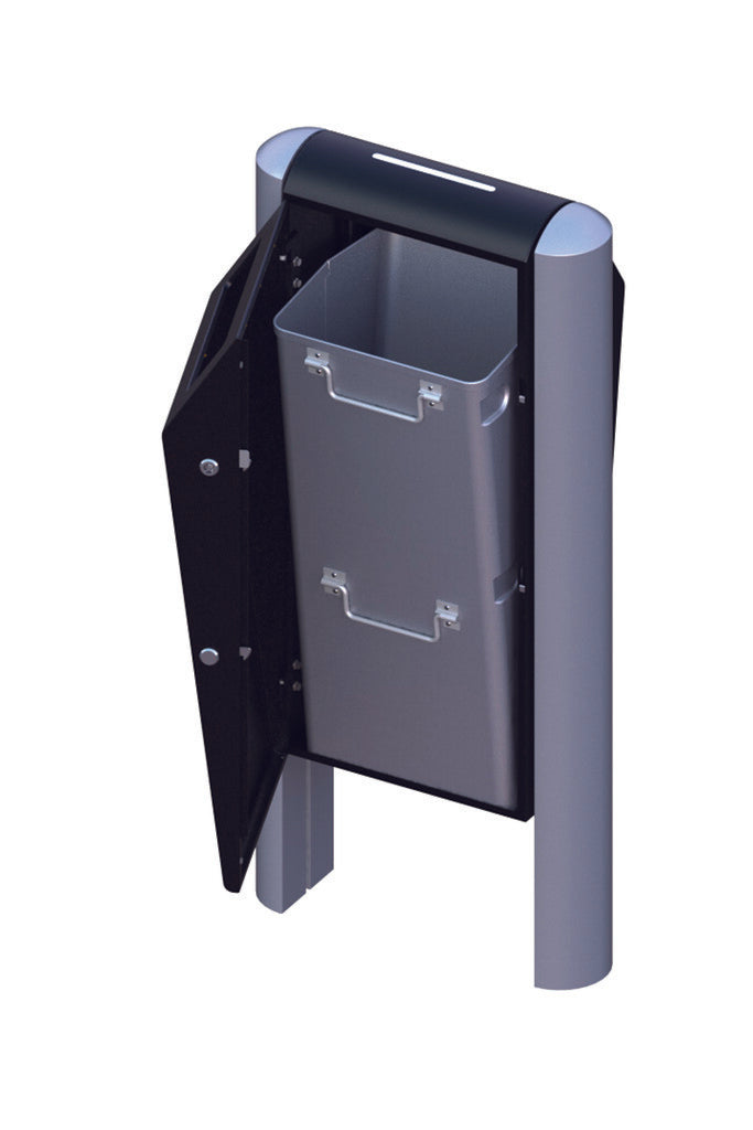 Fraai vormgegeven, robuuste buitenafvalbak van hoogwaardig, gepoedercoat verzinkt staal met inworpopening aan beide zijden. Met een meegeleverde driekantsleutel is de afvalbak eenvoudig en snel te ontgrendelen. Door het openen van de deur is de robuuste, maar lichte aluminium binnenbak (70 liter) vrij toegankelijk en eenvoudig te ledigen. Duurzaam en vandalismebestendig. Te bevestigen tussen aluminium profielstaanders in de grond. Ideaal voor plaatsing in een (attractie)park, nabij een winkelcentrum of openbare gelegenheden zoals scholen, ziekenhuizen, sport- en bedrijfsterreinen.