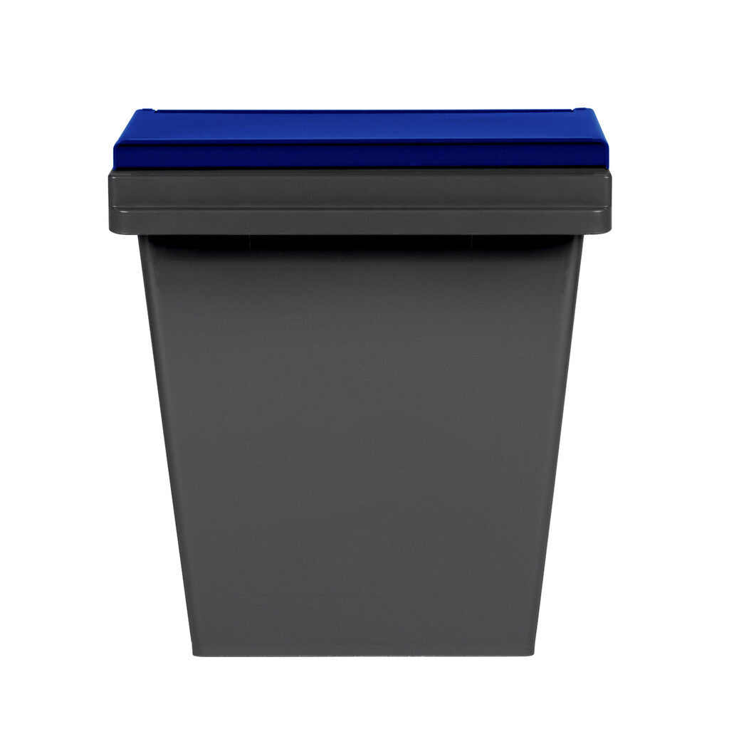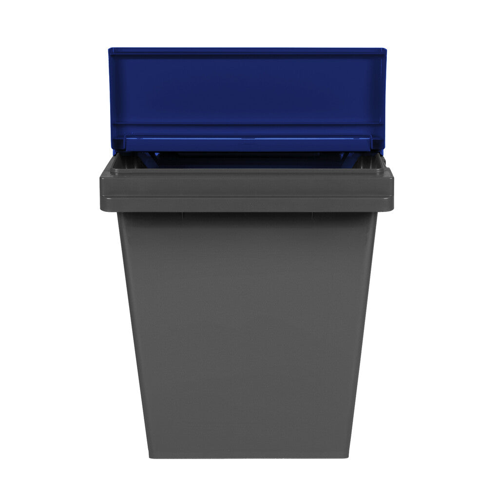 Stapelbare kunststof afvalbak voor binnengebruik. Voorzien van grote klepopening aan de voorzijde voor makkelijke toegankelijkheid. Het deksel is tevens volledig te openen voor het inwerpen van groter afval of om de bak te legen. Het hengsel maakt eenvoudig transport mogelijk en kan worden gebruikt als vergrendelingsmechanisme. Beschikbaar met verschillende kleuren deksels. Ideaal voor afvalscheiding.