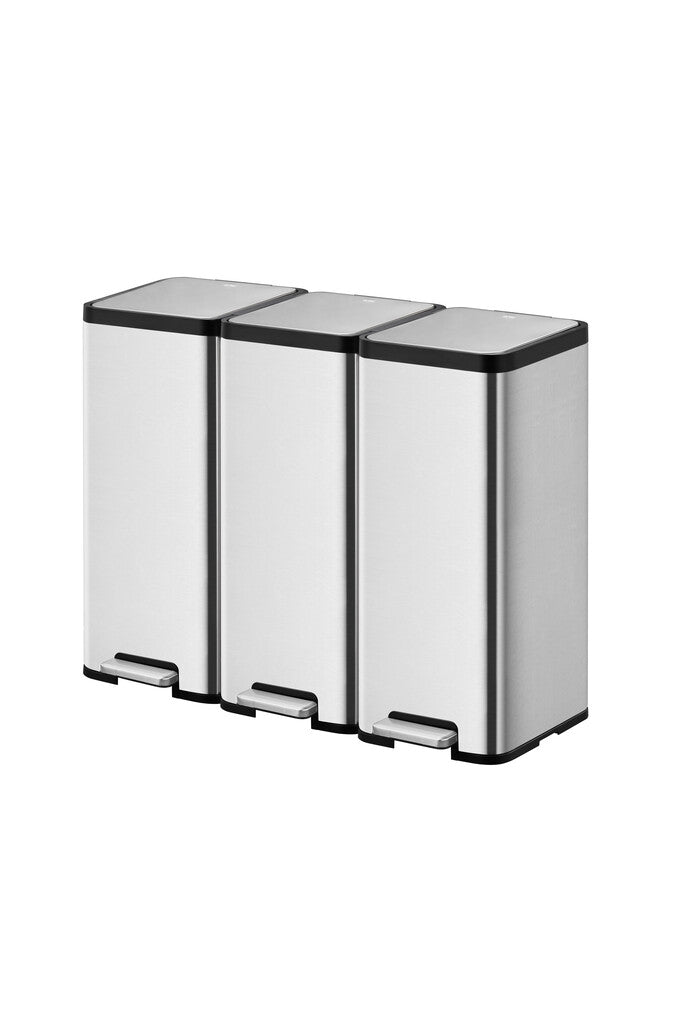 Compacte en functionele pedaalemmer van grijs mat RVS met fingerprint proof coating. Voorzien van kunststof binnenemmer, stevig pedaal en gedempt sluitend deksel. Strak tegen de muur te plaatsen en met de meegeleverde koppelstukjes is het eenvoudig meerdere pedaalemmers te verbinden waardoor een ruimtebesparende en flexibele recyclingoplossing ontstaat.