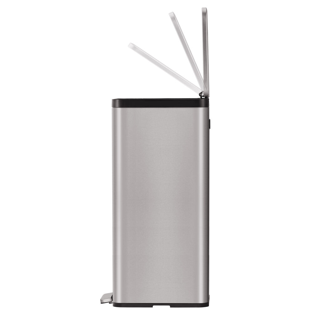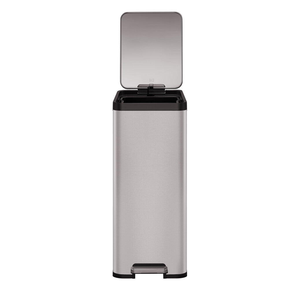 Compacte en functionele pedaalemmer van grijs mat RVS met fingerprint proof coating. Voorzien van kunststof binnenemmer, stevig pedaal en gedempt sluitend deksel. Strak tegen de muur te plaatsen en met de meegeleverde koppelstukjes is het eenvoudig meerdere pedaalemmers te verbinden waardoor een ruimtebesparende en flexibele recyclingoplossing ontstaat.