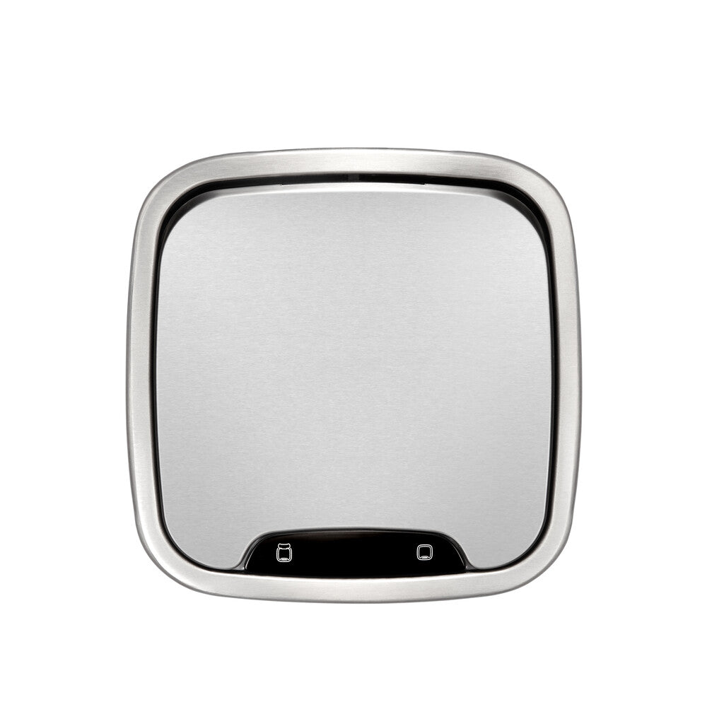 Stijlvolle afvalbak met afgeronde hoeken van mat RVS met fingerprint proof coating voorzien van volledig RVS deksel en kunststof binnenemmer. Het sensormechanisme met touch switch zorgt ervoor dat de afvalbak zowel d.m.v. een sensor als via het touch paneel geruisloos te openen en sluiten is. De antislip bodem beschermd tegen krassen. De sensor werkt op 4x AAA batterijen (niet inbegrepen).