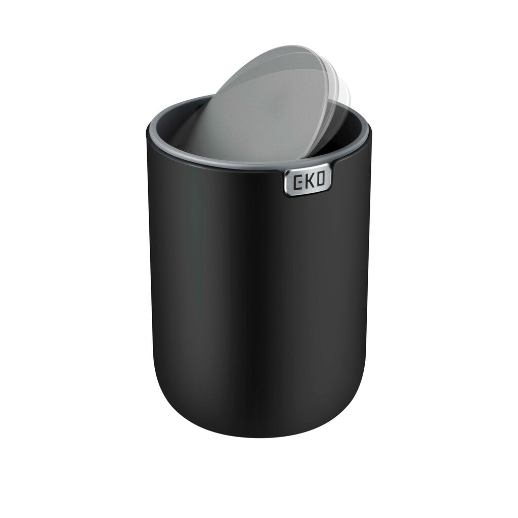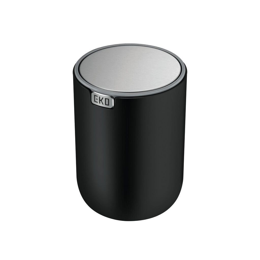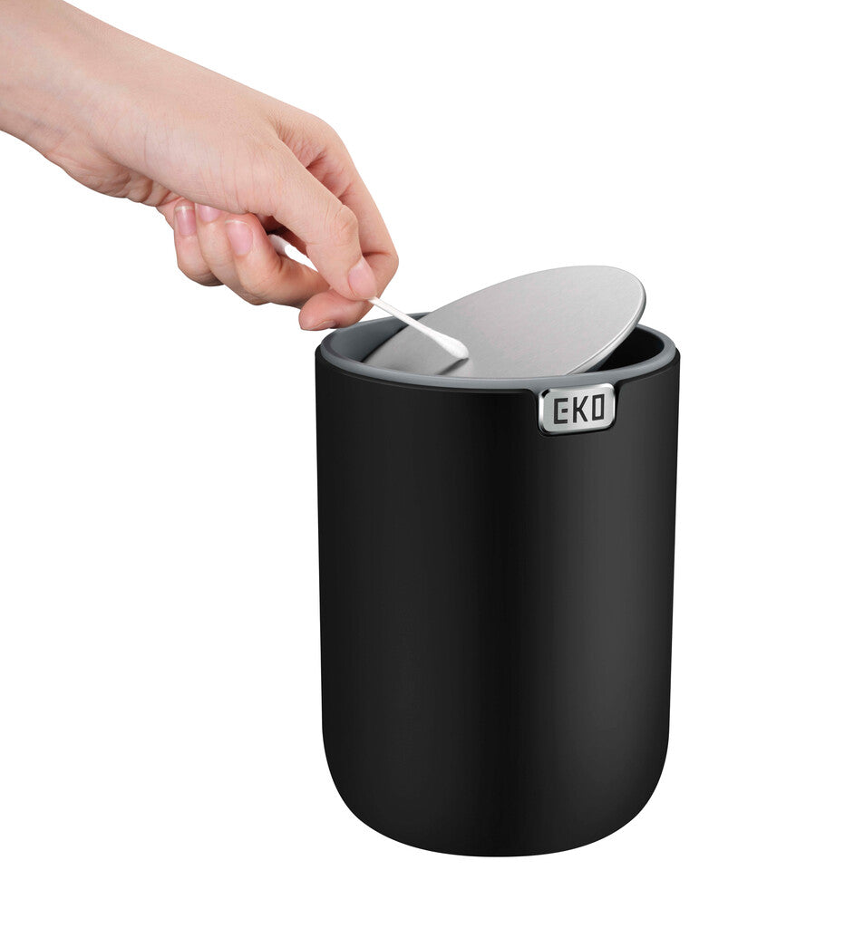 Slank vormgegeven tafelafvalbakje van kunststof met een inhoud van 2,2 liter. Het handige mat RVS vlakke swingdeksel sluit automatisch na gebruik.