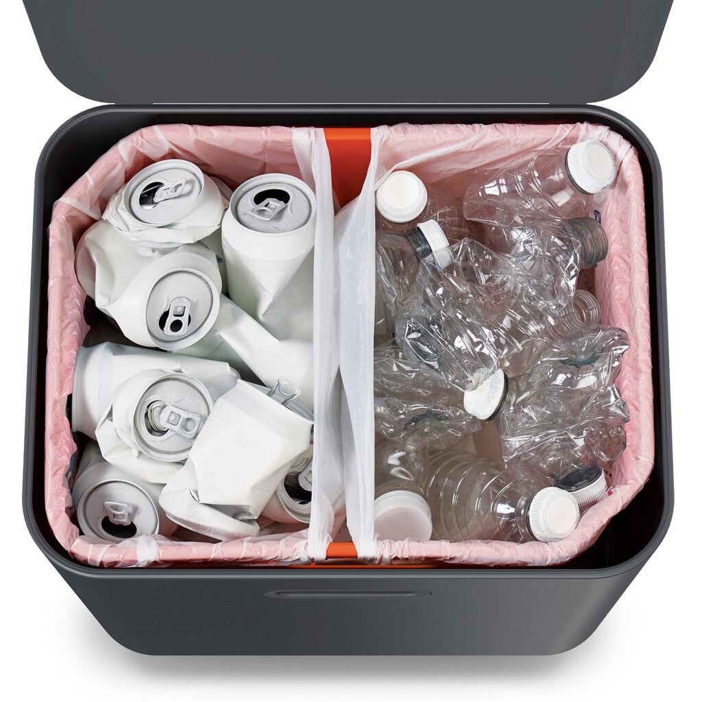 Afvalscheidingsunit van gepoedercoat staal met fingerprint proof RVS deksel met touch systeem. Groot compartiment van 36 liter met binnenbak en uitneembaar GFT-bakje (4 liter) met deksel en hengsel. De la met binnenbak heeft een capaciteit van 24 liter. Door het verwijderbare tussenschot is de la multifunctioneel te gebruiken voor het scheiden van een of meer afvalstromen. De la is volledig uitschuifbaar waardoor de afvalzak eenvoudig verwisseld kan worden. Met geïntegreerde houder voor geurfilter in het deksel. Custom-fit afvalzakken en geurfilters apart verkrijgbaar. Geschikt voor huishoudelijk gebruik.