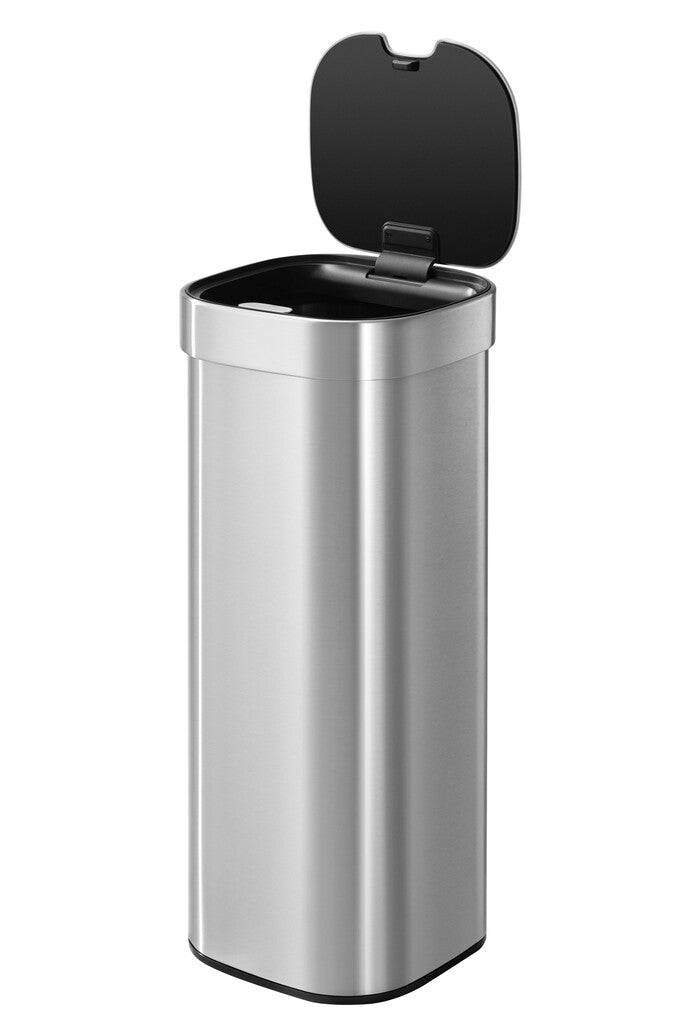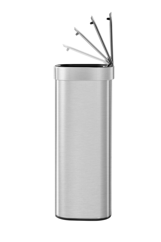 Een stijlvolle prullenbak van geborsteld RVS met fingerprint proof coating en touch deksel om de afvalbak met een simpele aanraking geruisloos te openen. De stay-open functie vergrendelt het deksel voor het makkelijk schoonmaken van de afvalbak of wisselen van de afvalzak. De prullenbak is zonder binnenemmer, maar de kunststof binnenring aan de binnenkant van de afvalbak zorgt ervoor dat de afvalzak netjes op zijn plek blijft.
