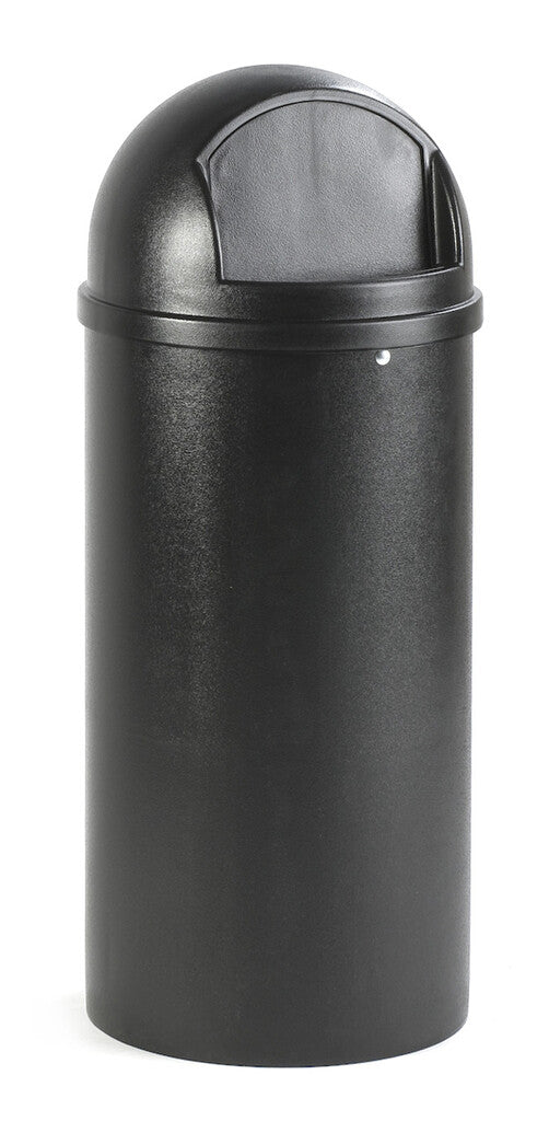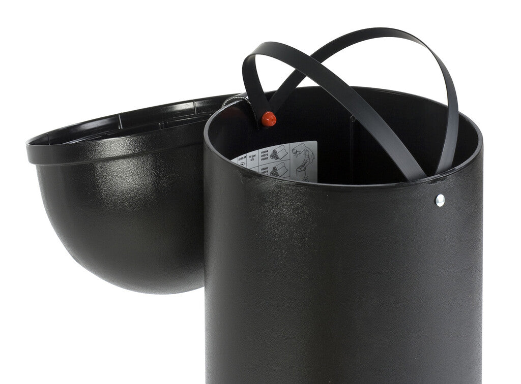 Ronde container met pushdeksel, inclusief afvalzakhouder. Gemaakt van vuurbestendig kunststof.