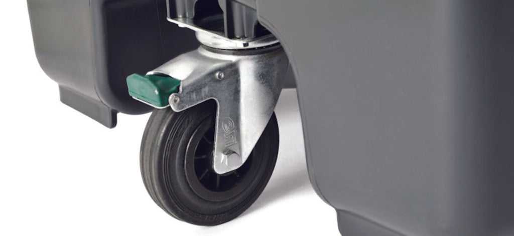 Kunststof rolcontainer, met extra zwenkwiel.