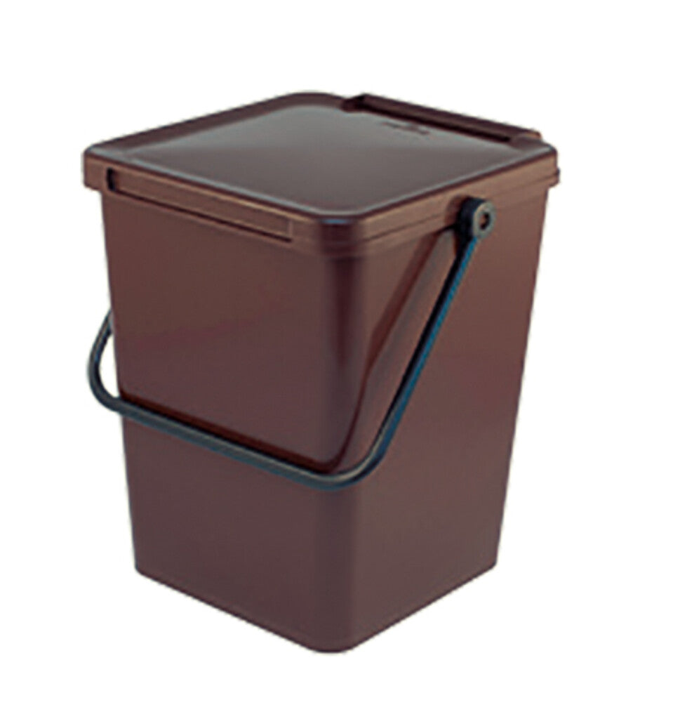 Circulaire afvalemmer van gerecycled kunststof met scharnierend deksel. De afvalbak heeft een grote inwerpopening, hierdoor is het weggooien van voedselresten vanaf borden of snijplanken gemakkelijk. De afgeronde hoeken zorgen ervoor dat de afvalemmer makkelijk schoon te maken is en hygiënisch in gebruik. Het hengsel maakt het verplaatsen makkelijk en dient tevens als vergrendeling.