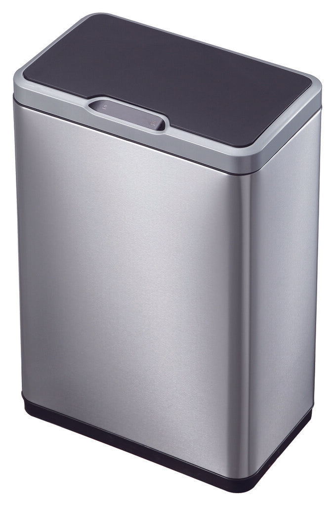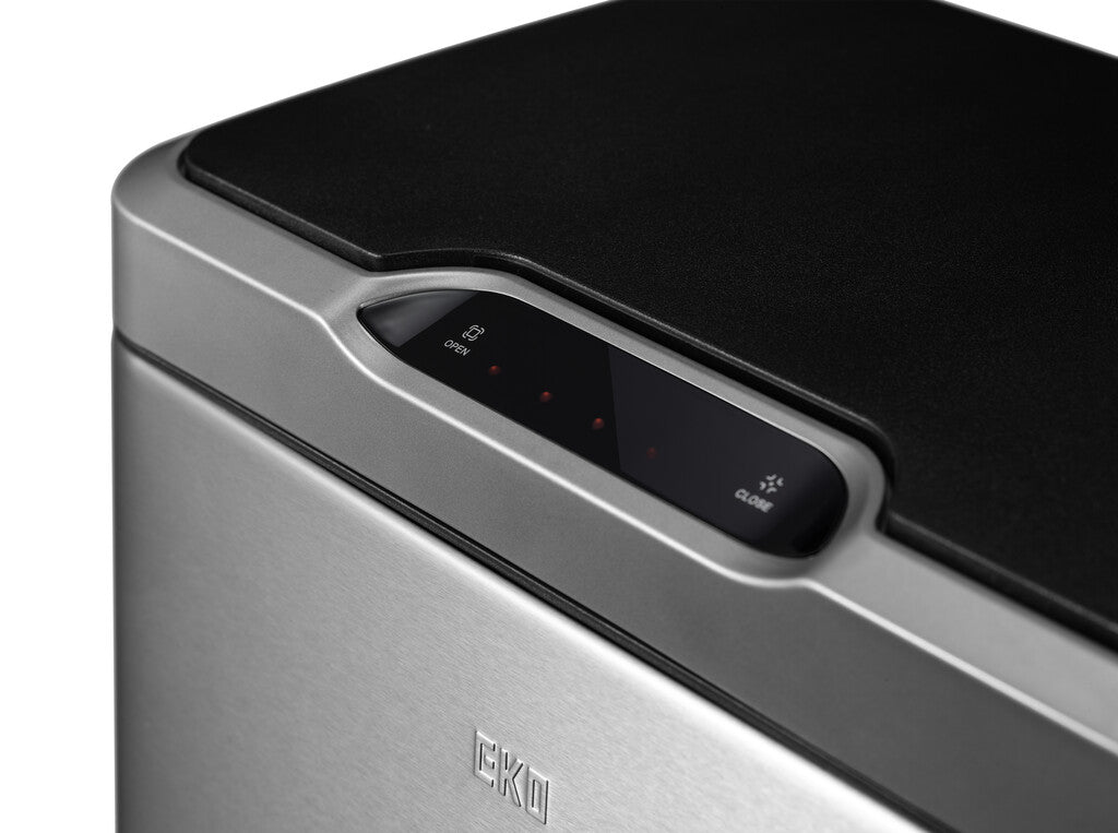 Stijlvolle afvalbak voor afvalscheiding van geborsteld RVS voorzien van fingerprint proof coating en 2 kunststof binnenemmers (2x 20 liter). Het sensormechanisme voorzien van touch switch zorgt ervoor dat de afvalbak zowel d.m.v. een sensor als via de touch knoppen te openen en sluiten is. Hygiënisch in gebruik. Het kunststof deksel sluit geruisloos. Door het afneembare deksel is de afvalzak eenvoudig te wisselen. Werkt op 6 AA batterijen (niet inbegrepen). De geschikte maat afvalzak is het type F1.