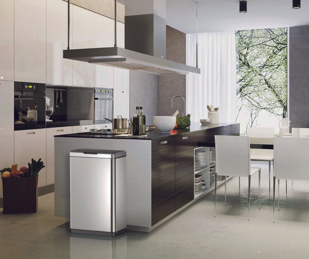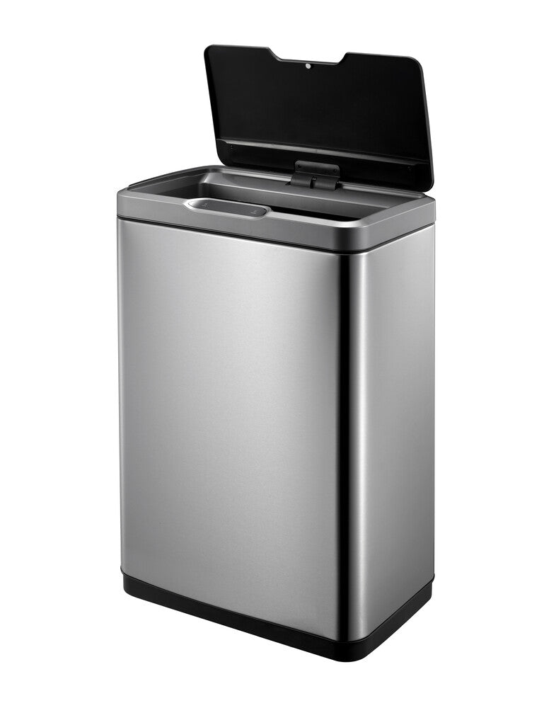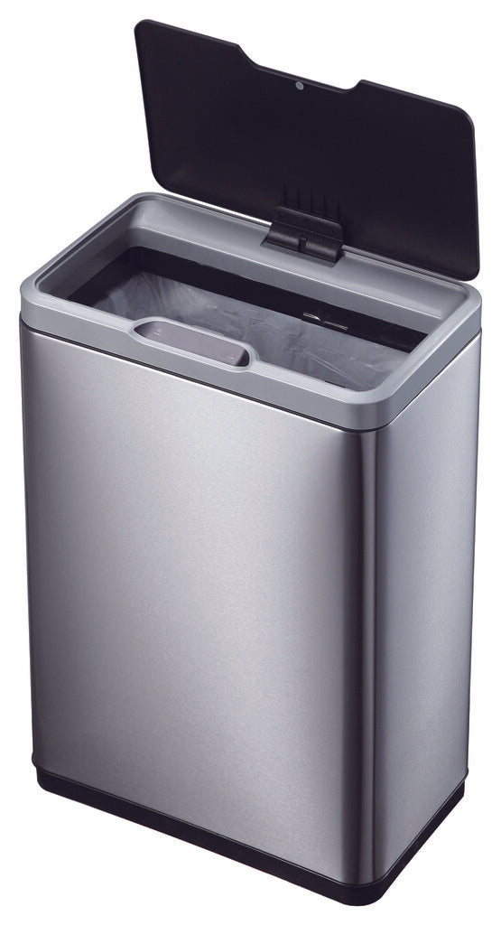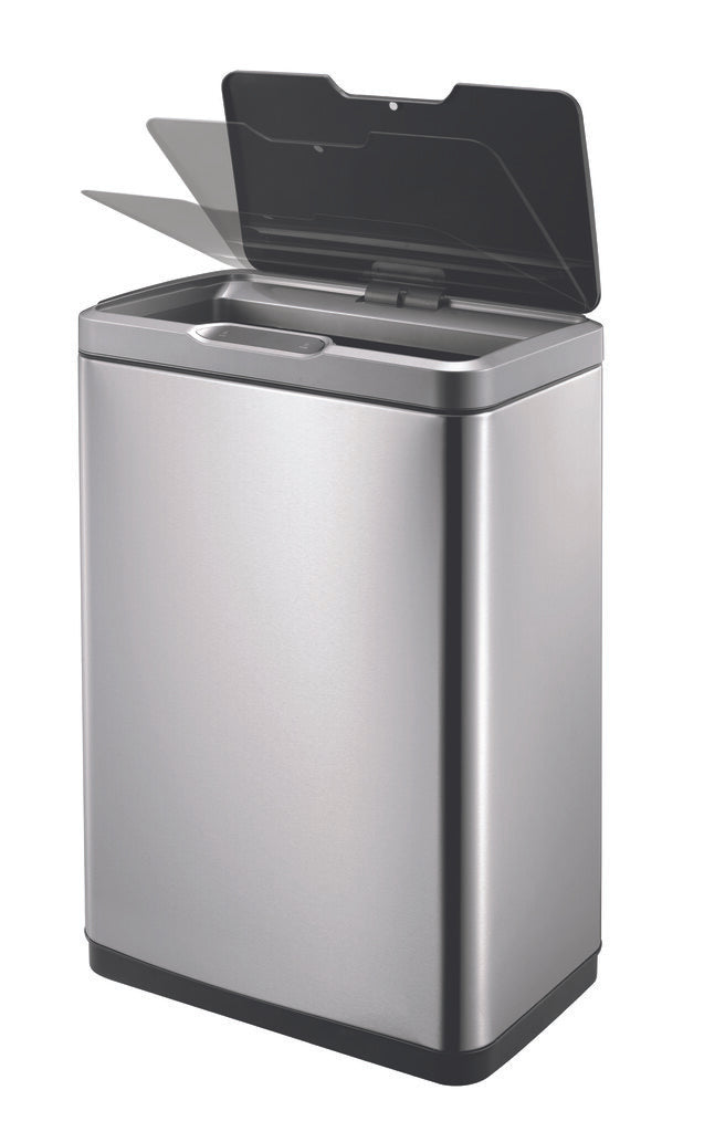 Stijlvolle afvalbak van geborsteld RVS voorzien van fingerprint proof coating en kunststof binnenemmer. Het sensormechanisme voorzien van touch switch zorgt ervoor dat de afvalbak zowel d.m.v. een sensor als via de touch knoppen te openen en sluiten is. Hygiënisch in gebruik. Het kunststof deksel sluit geruisloos. Door het afneembare deksel is de afvalzak eenvoudig te wisselen. Werkt op 6 AA batterijen (niet inbegrepen).