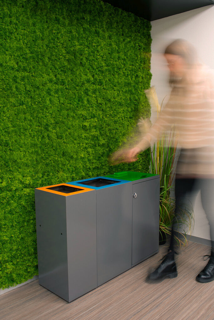 Luxe, zeer degelijke, modulaire afvalbak van gepoedercoat staal en verstelbare pootjes. De bak beschikt over een deur aan de voorzijde en via een rails kan de zakhouder naar voren getrokken worden waardoor de zak eenvoudig te wisselen is (zonder heffen, dus arbo-verantwoord). Inclusief connectiemateriaal waardoor meerdere units aan elkaar gekoppeld kunnen worden om een afvalscheidingsstation voor meerdere afvalstromen te creëren. Functioneel en robuust. Gunstige prijs-kwaliteitverhouding. De afvalbak wordt zonder top geleverd. De top kan apart besteld worden en is in verschillende kleuren beschikbaar om de diverse afvalstromen te kunnen onderscheiden. Eveneens is er een top met klepdeksel beschikbaar (in diverse kleuren) zodat de afvalbak hygiënisch gesloten is.