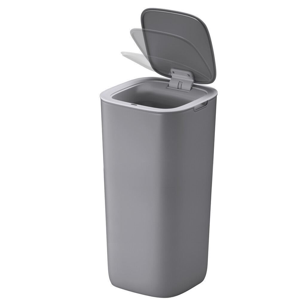 Trendy vierkante afvalbak van kunststof met sensor en touch switch paneel om het deksel met een simpele beweging te openen. Sluit automatisch en geruisloos na 5 seconden. Voorzien van afvalzakhouderring om de afvalzak netjes op zijn plaats te houden en zacht handvat van siliconen. De afdichtingsring rondom het deksel zorgt voor het effectief vasthouden van nare luchtjes in de afvalbak. Werkt op 4 AAA batterijen (niet inbegrepen). Laag in energieverbruik.