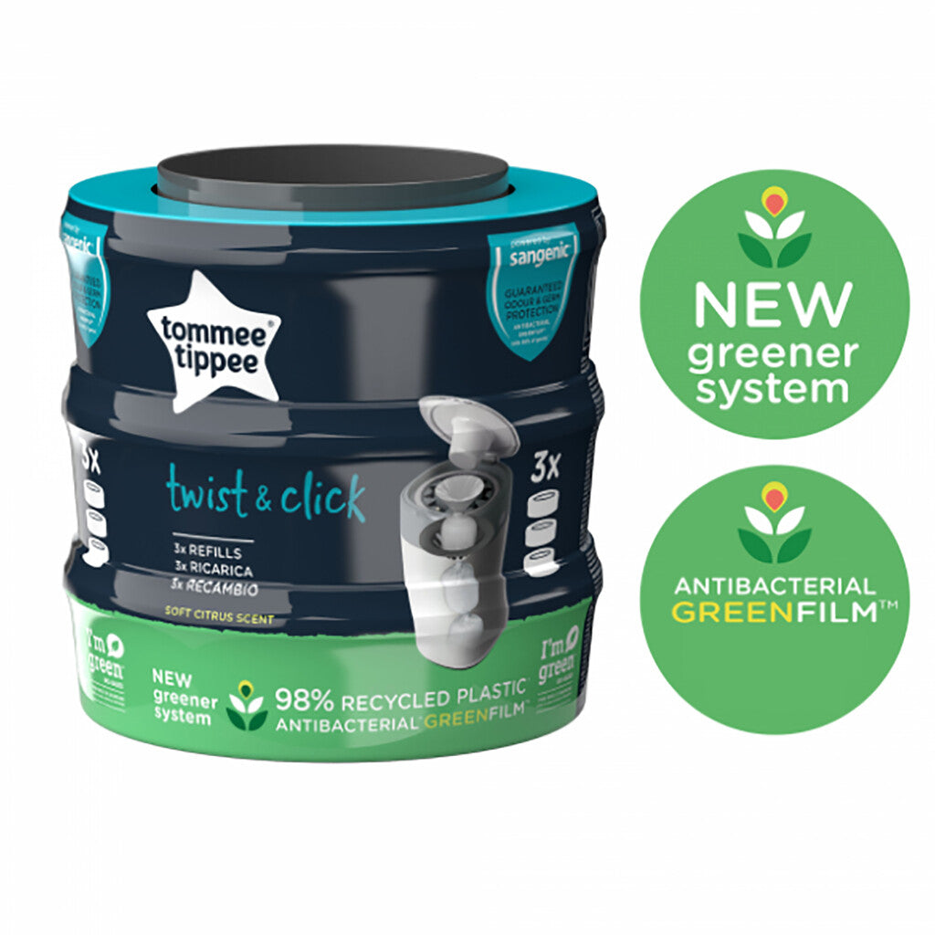 Navulcassettes voor Twist & Click Luieremmer | 3 stuks | Tommee Tippee | Grijs