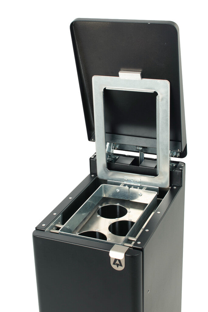 Met de aluminium bekerstapelaar voor de Nexstep wordt het gescheiden inzamelen van bekers efficiënt en overzichtelijk. De bekers worden netjes opgestapeld, wat zorgt voor meer ruimtebesparing en een opgeruimde uitstraling bij koffiecorners of automaten.