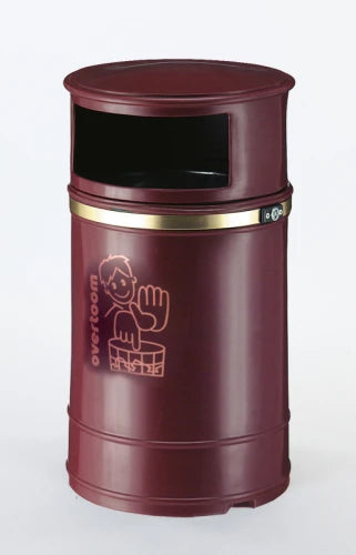 Ronde, kunststof afvalbak voor wand- of paalbevestiging met metalen binnenemmer.