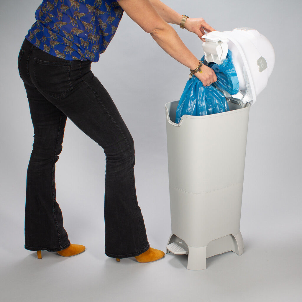 Hygiënische luieremmer van kunststof met de geurdichte technologie van DiaperChamp, waardoor de luiers gemakkelijk en luchtdicht in de emmer worden opgeslagen. Gemakkelijk, handenvrij en hygiënisch met het voetpedaal te openen. Volledig te demonteren en eenvoudig schoon te maken. Ook geschikt voor incontinentie materiaal (groot volume). Werkt niet met speciale cassettes, er passen gewone afvalzakken in. Capaciteit: circa 60 luiers (afhankelijk van de maat luiers).