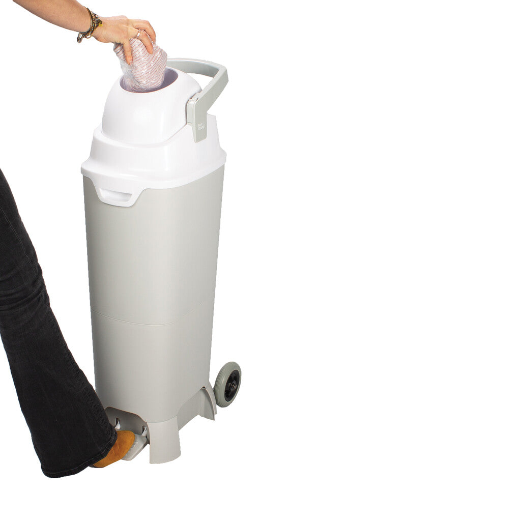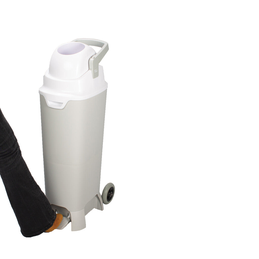 Hygiënische luieremmer van kunststof met de geurdichte technologie van DiaperChamp, waardoor de luiers gemakkelijk en luchtdicht in de emmer worden opgeslagen. Gemakkelijk, handenvrij en hygiënisch met het voetpedaal te openen. Volledig te demonteren en eenvoudig schoon te maken. Bovendien eenvoudig te verplaatsen omdat dit model uitgerust is met wielen en een handvat. Ook geschikt voor incontinentie materiaal (groot volume). Werkt niet met speciale cassettes, er passen gewone afvalzakken in. Capaciteit: circa 60 luiers (afhankelijk van de maat luiers).