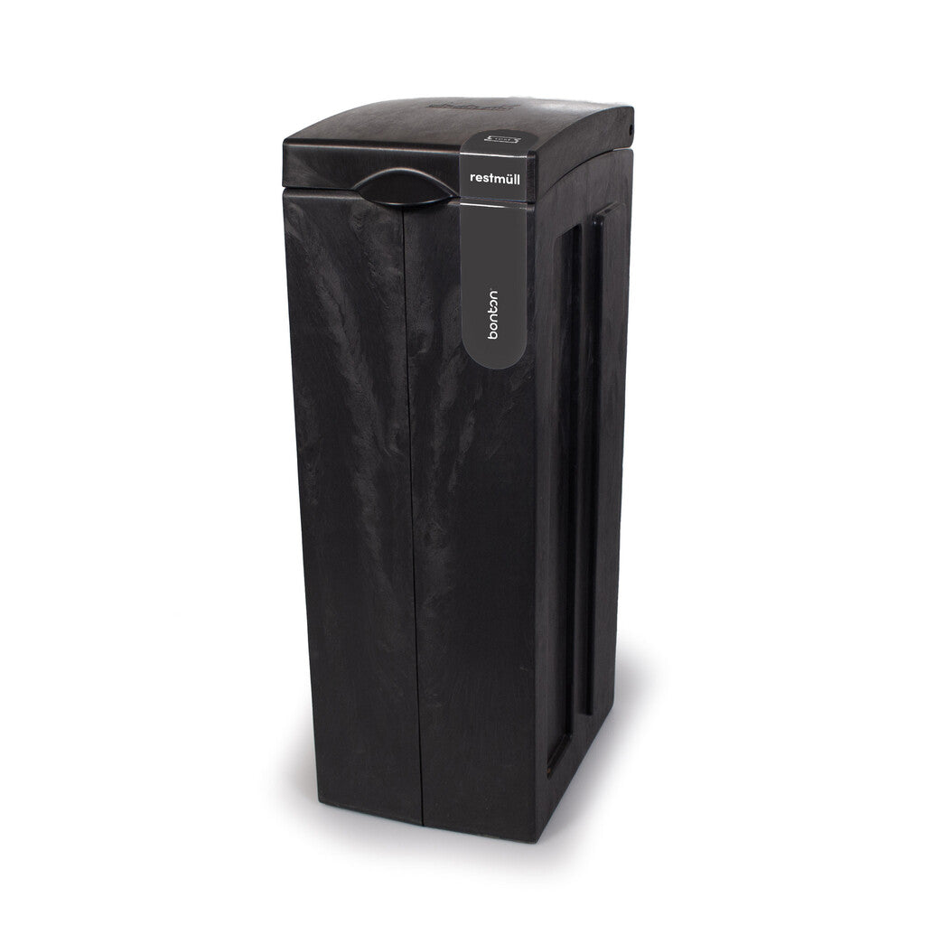 Circulaire afvalscheidingsmodule van 100% gerecycled polypropyleen uit bouw- en sloopafval en grofvuil. Doordat er bij de productie gebruik is gemaakt van gerecyclede kunststoffen heeft iedere unit een uniek uiterlijk. Modulair systeem, klik eenvoudig verschillende modules aan elkaar tot een complete afvalscheidingsunit. De module heeft een kunststof binnenemmer en is voorzien van een gekleurde sticker om de afvalstroom aan te duiden (Duitse tekst). De Bonton Original is tevens zonder bestickering leverbaar. Afwijkende stickers op aanvraag. Perfect passende afvalzakken om de Bonton schoon te houden zijn apart te bestellen.