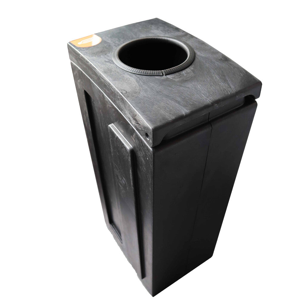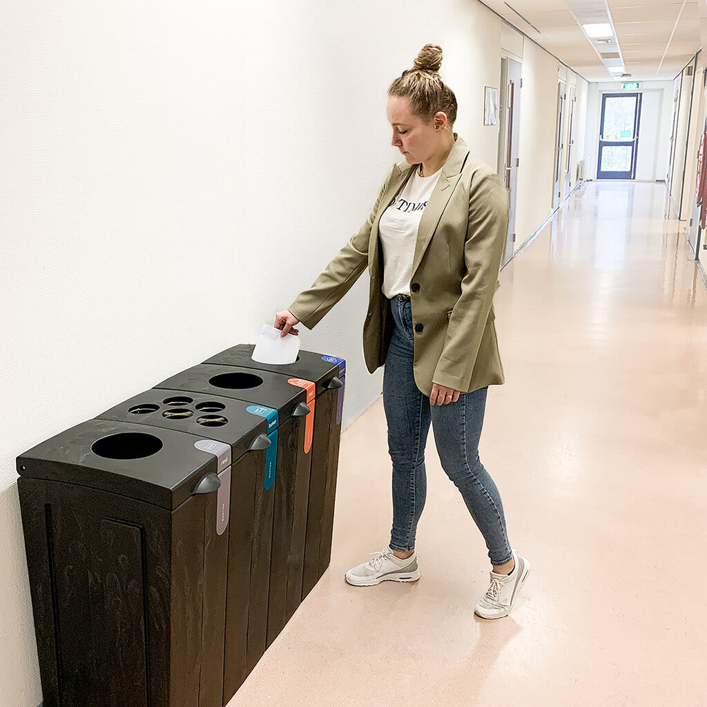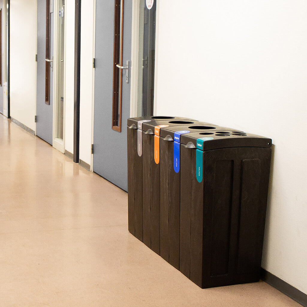 Circulaire afvalscheidingsmodule van 100% gerecycled polypropyleen uit bouw- en sloopafval en grofvuil. Doordat er bij de productie gebruik is gemaakt van gerecyclede kunststoffen heeft iedere unit een uniek uiterlijk. Modulair systeem, klik eenvoudig verschillende modules aan elkaar tot een complete afvalscheidingsunit. De module heeft een kunststof binnenemmer en is voorzien van een gekleurde sticker om de afvalstroom aan te duiden (Nederlandse tekst). De Bonton Original is tevens zonder bestickering leverbaar. Afwijkende stickers op aanvraag. Perfect passende afvalzakken om de Bonton schoon te houden zijn apart te bestellen.