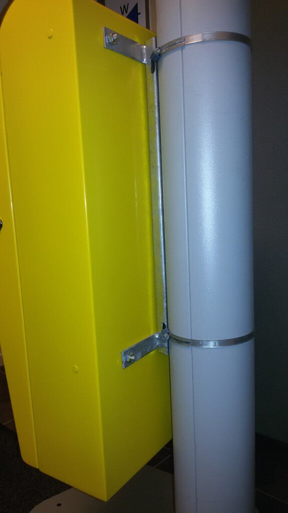 Paalhouder van thermisch verzinkt staal om de Basic en Single BINsystem buitenafvalbak aan een (lantaarn)paal te bevestigen. Inclusief bouten en moeren. Exclusief spanringen (apart te bestellen).